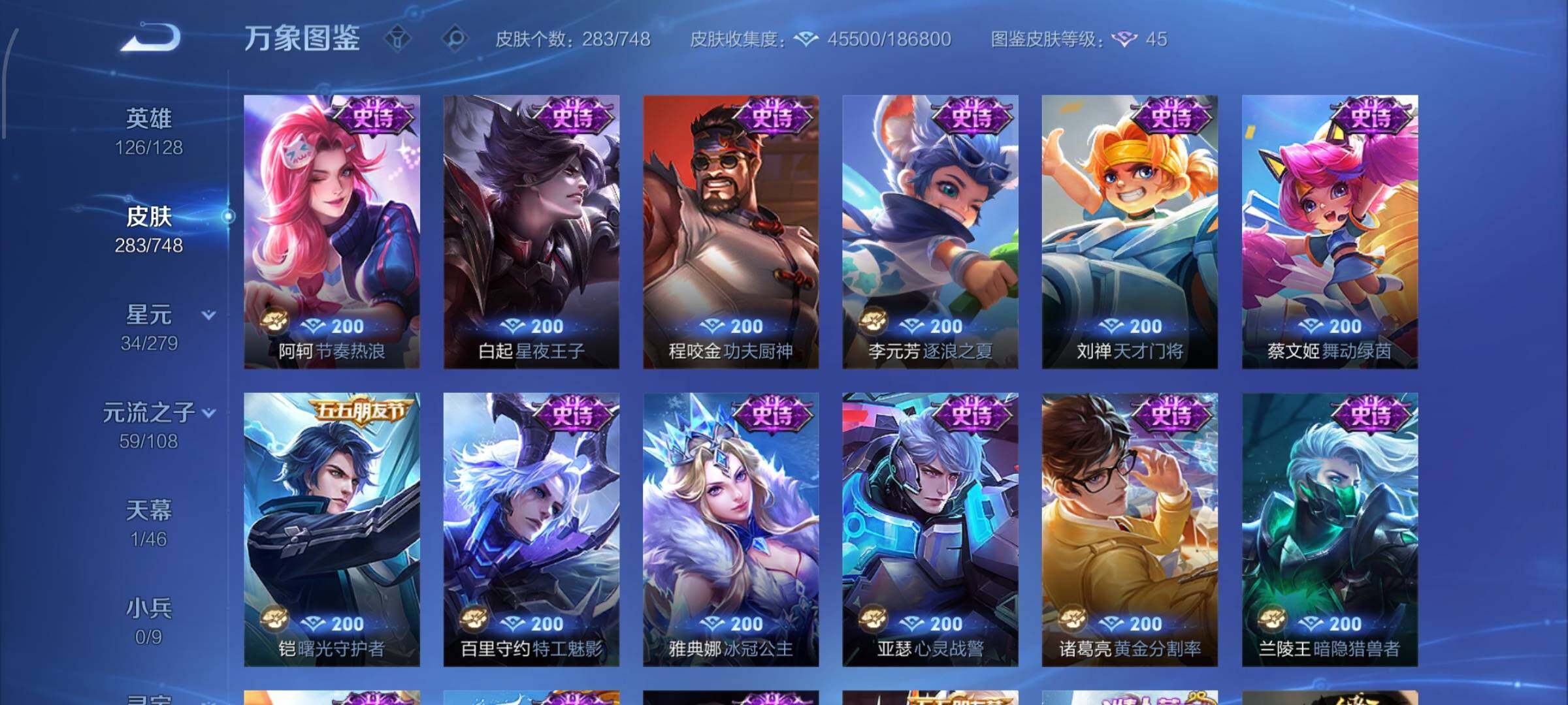 【店铺主推·鸣剑曳影·碎月剑心·马可怪盗基德·鲁班柯南·九山相柳·澜愿照九州拓·祥瑞亨通·澜逐花归海·花朝如约·镜炽阳神光·一念神魔·可二次】YXw9655-安卓Q-126英雄-283皮肤-11王者印记-260铭文-贵族积分7w【贵族8】【1典藏·1无双·2珍品·1星传说·19传说·1天幕·25按键·272幸运值】【因赛季更新游戏段付以上号为准!】
