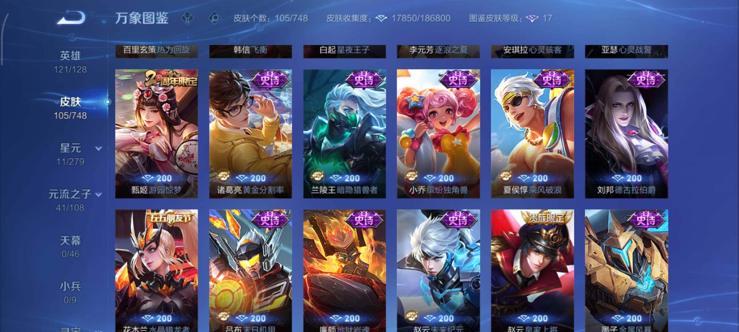 【高质量·弑枪猎影·乘龙铭钟鼎·澜电玩雷克斯·齐天大圣·诗剑行·飞衡·美猴王·可二次】YXw9658-安卓Q-121英雄-105皮肤-5王者印记-70铭文-贵族积分1w【贵族6】【1典藏·10传说·2按键】【因赛季更新游戏段付以上号为准!】