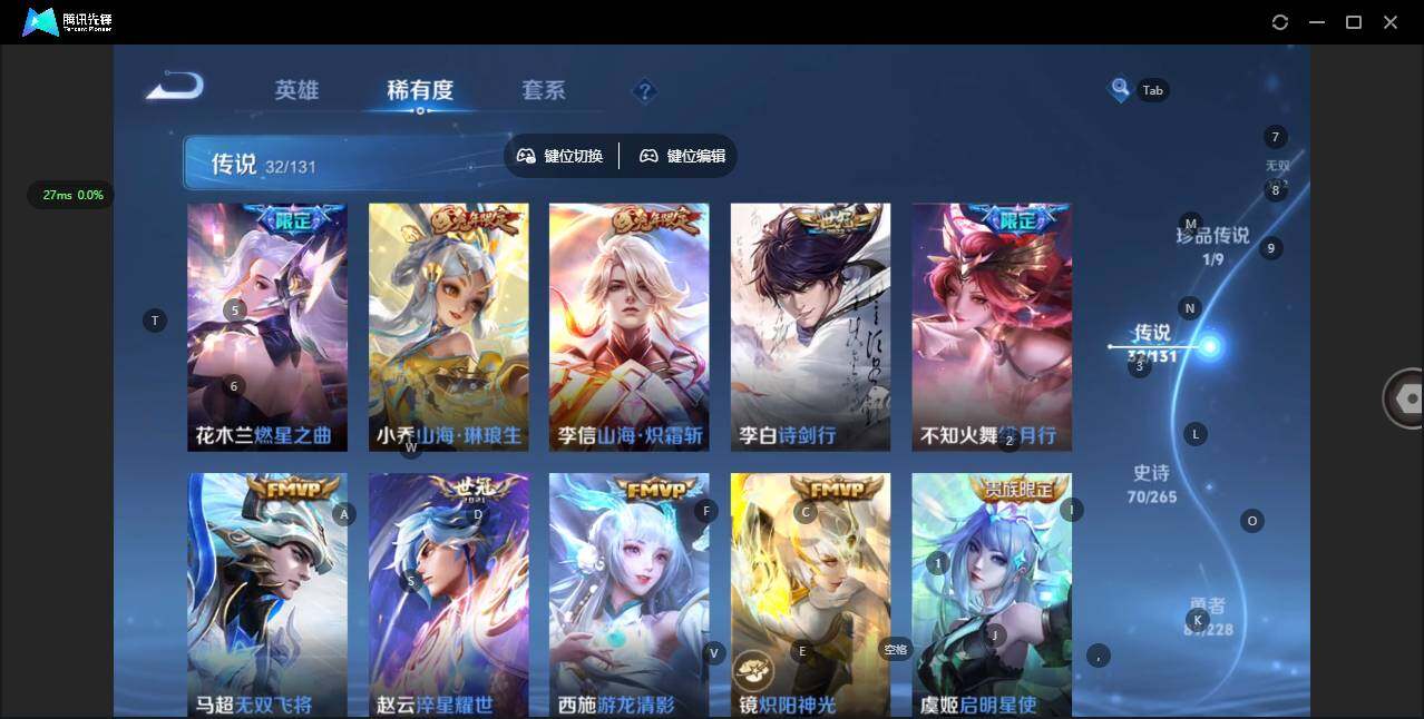 实名: 可修改 贵族等级: V8 英雄数: 126 皮肤数: 233 荣耀水晶