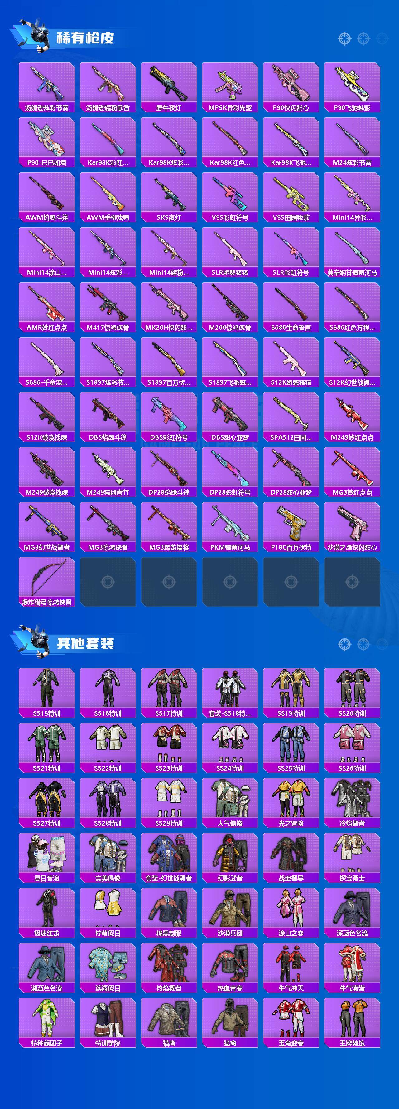 【粉色枪皮等级】:AKM-绿萝繁花(五级),SCAR-L-锦绣绵绵(五级),Kar98K-巳巳如意(五级),DP-28-豹影疾电(五级)
