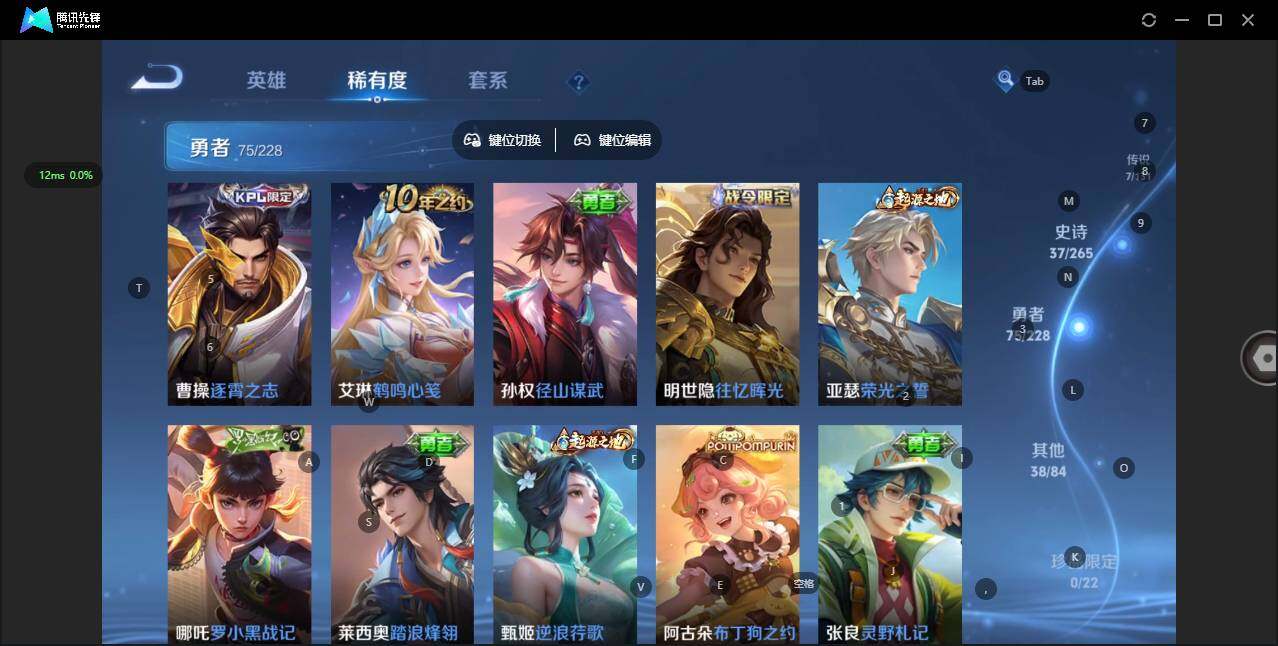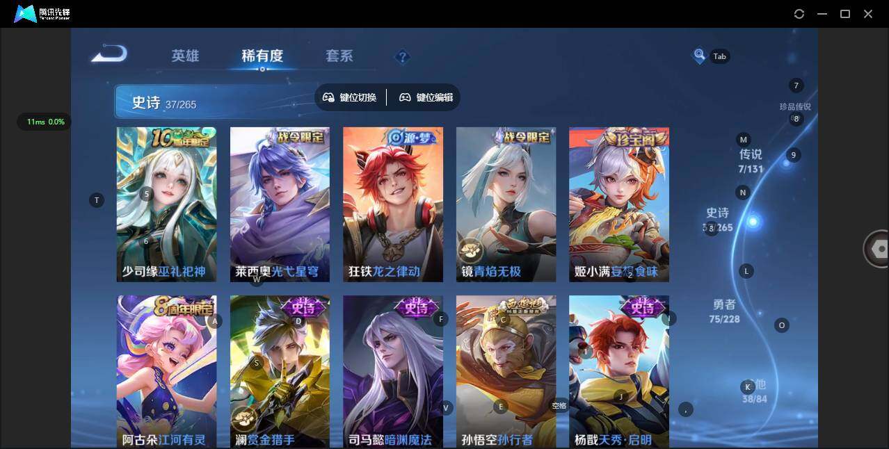 贵族等级: V6 英雄数: 125 皮肤数: 157 星传说: 幽冥火 传说皮: 云鹰飞将,黄金白羊座,地狱之眼,无双飞将,澜逐花归海 限定皮: 李小龙,孙行者,鸣野蒿,逐霄战戟,愿照·山河定