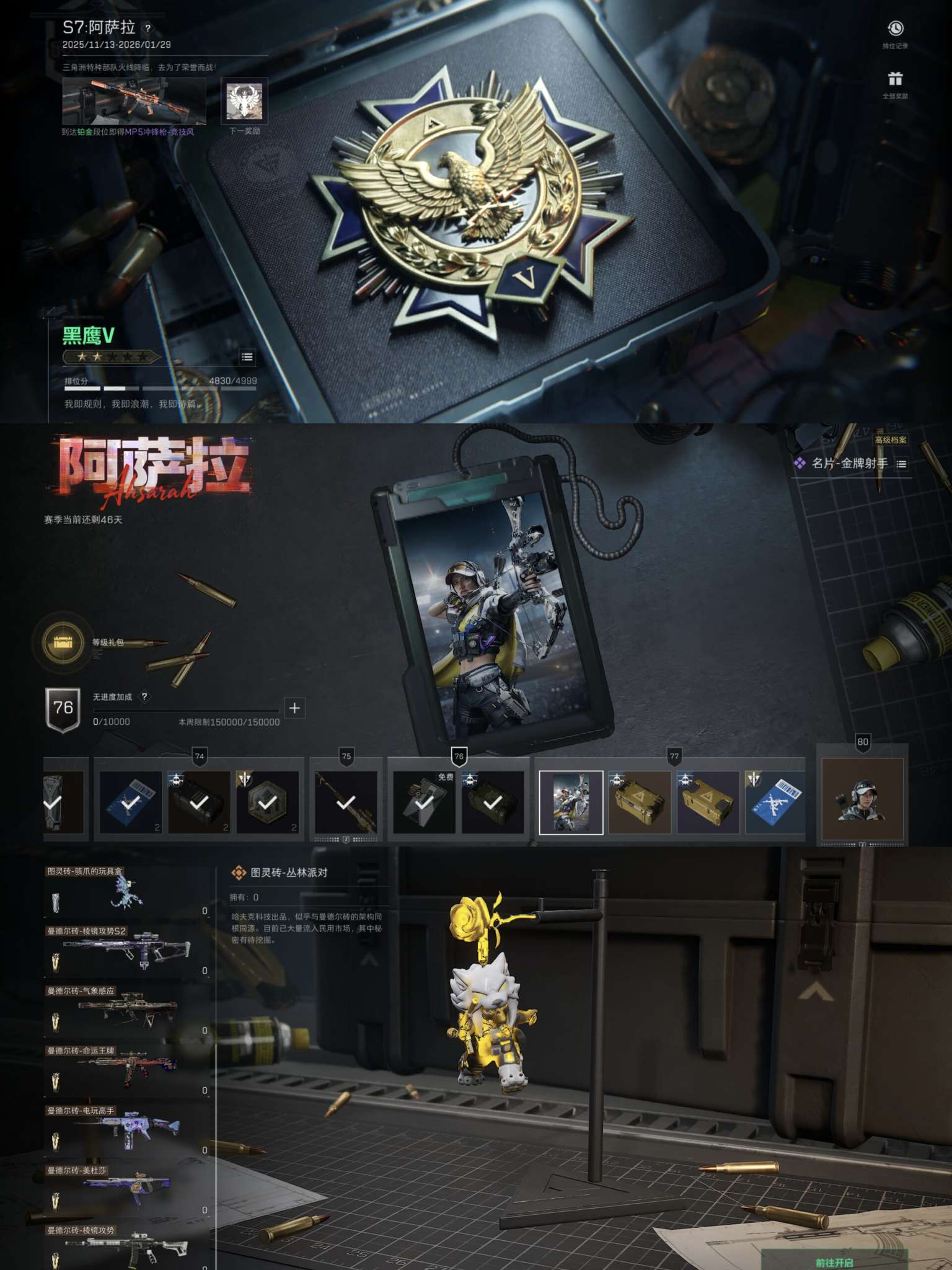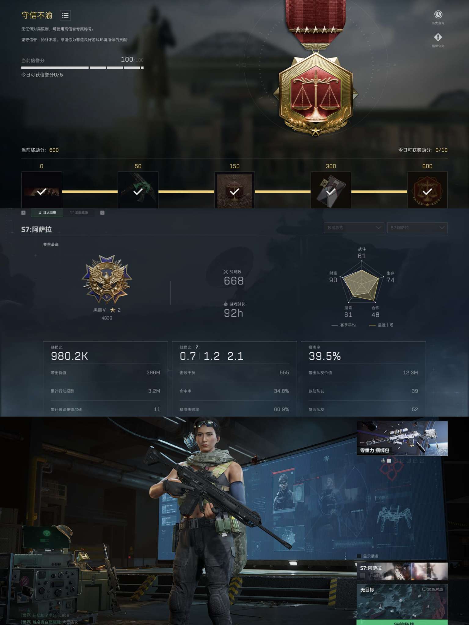 【总资产:141.1M+哈夫币:1216W+近战武器-北极星+S7顶级安全箱+红狼蚀金玫瑰+蜂医送葬
