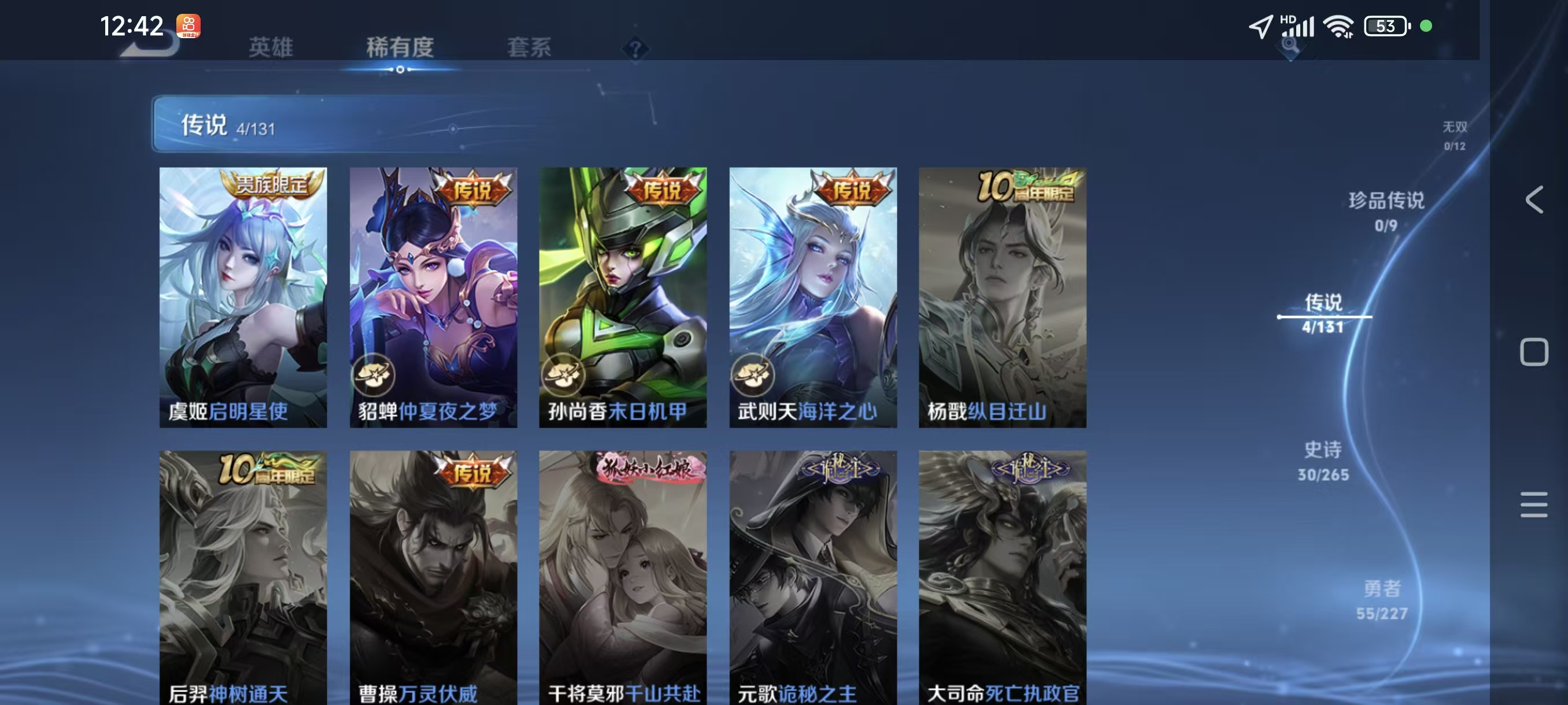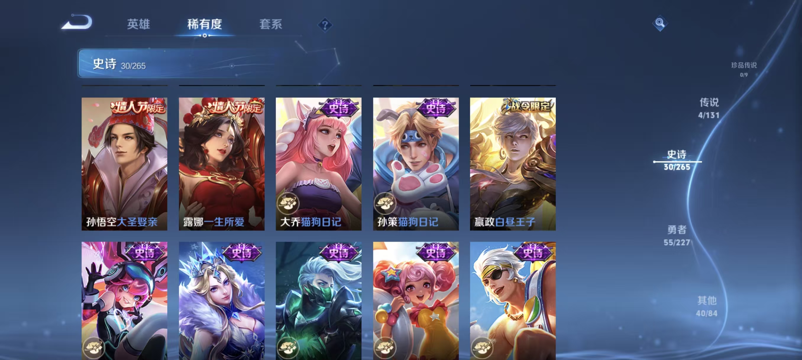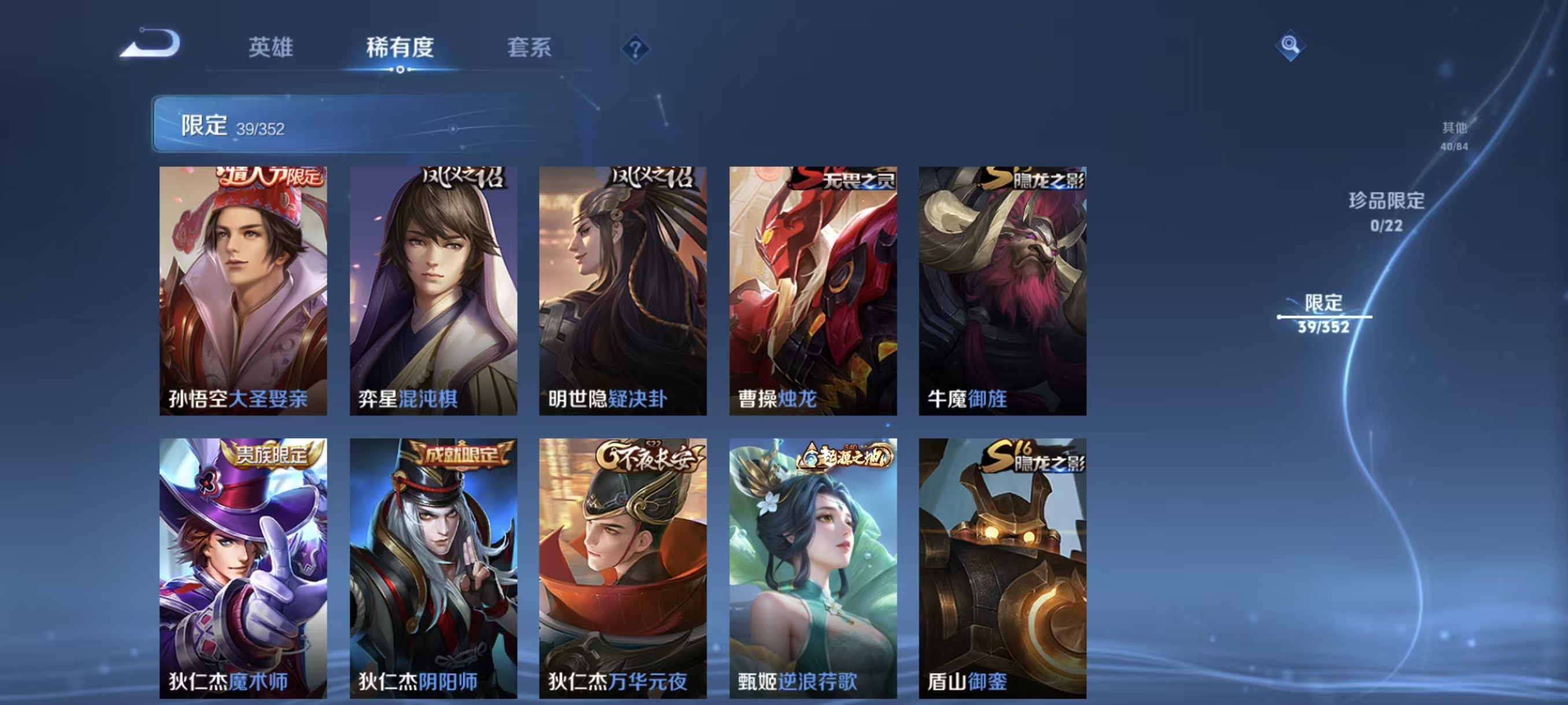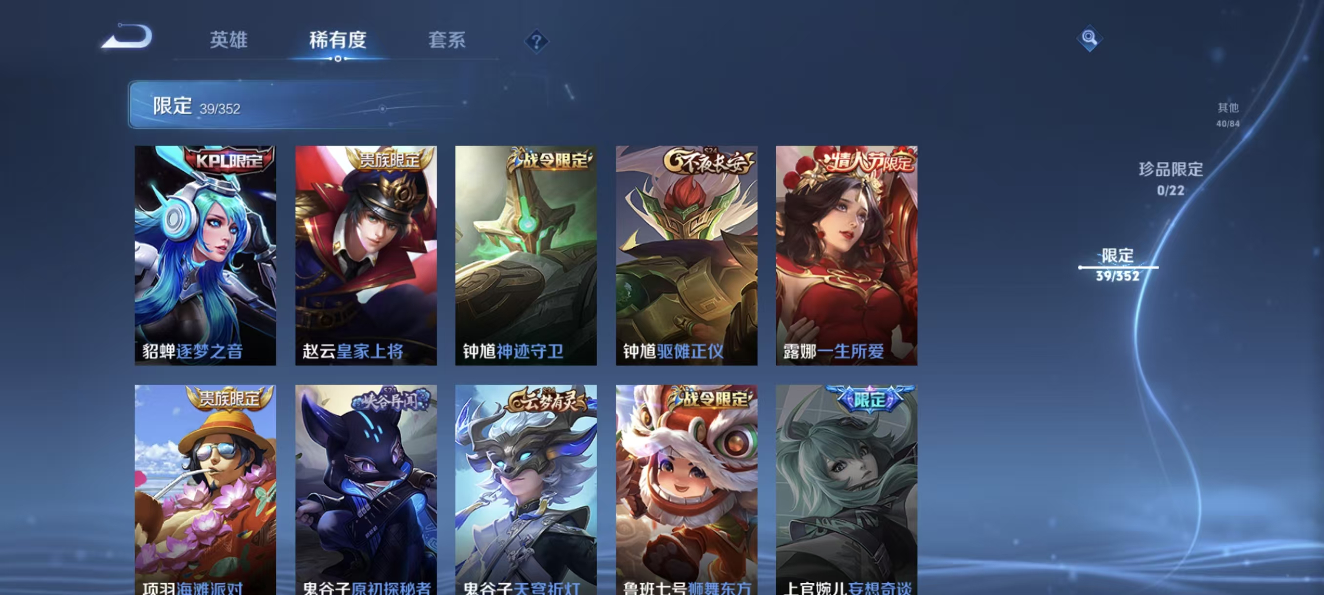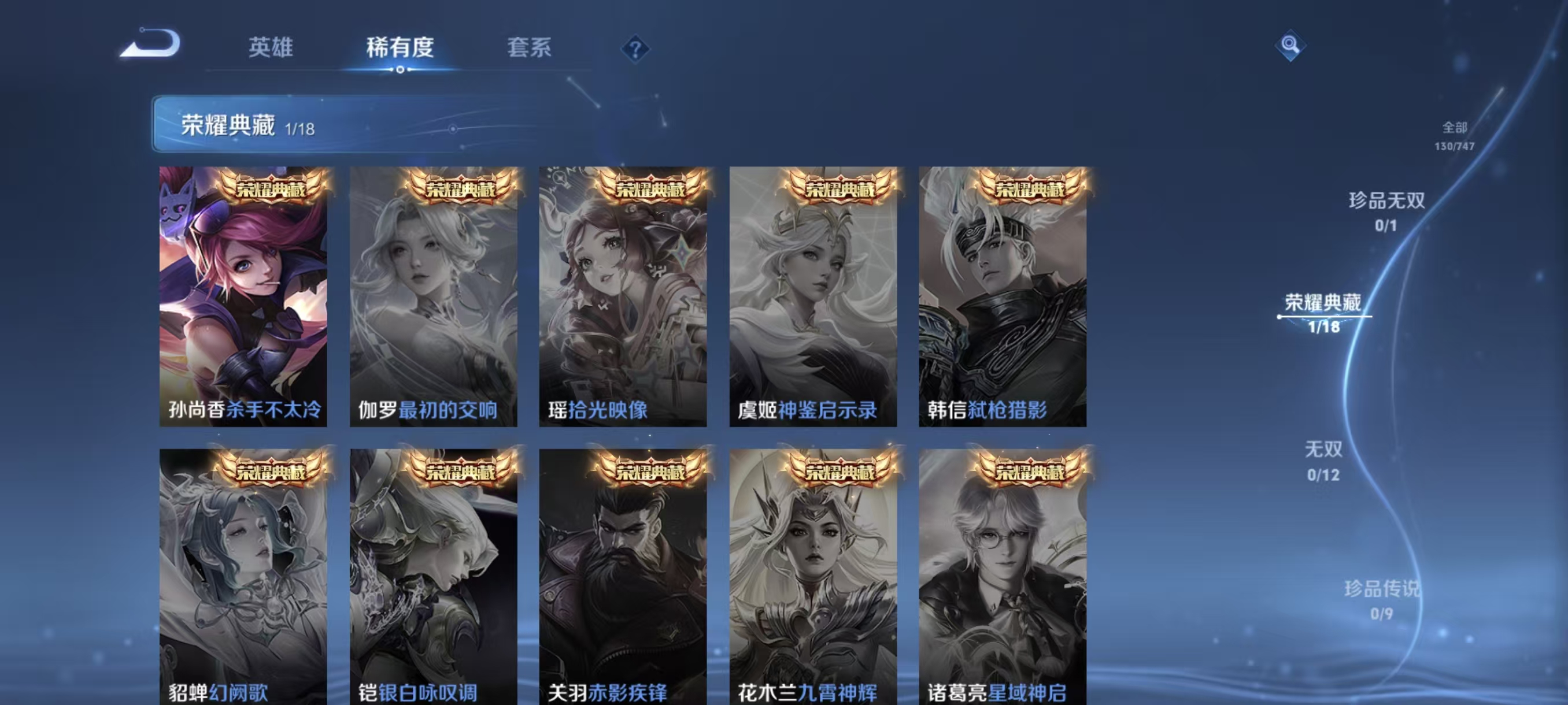 皮肤130 英雄120 永恒钻石 荣耀典藏2 传说4 其他皮肤54-王者荣耀v8退游号两个荣耀水晶