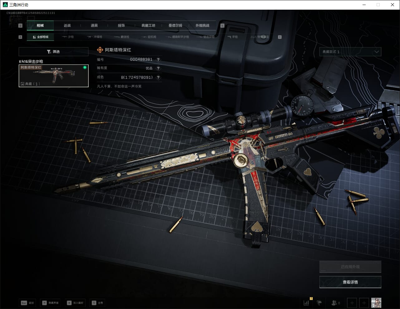 【总资产:200M,近战武器-北极星,K416突击步枪-命运(优品B);骇爪维什戴尔,红狼蚀金玫瑰,
