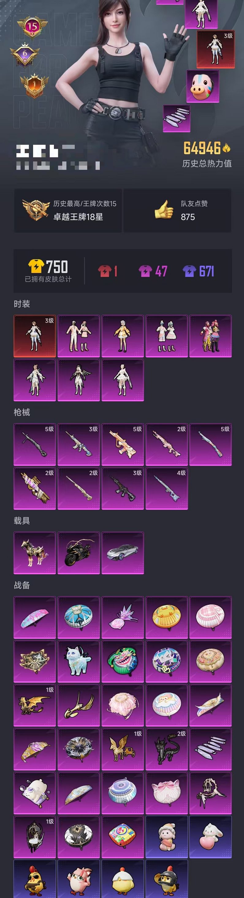 457-【1红装3级欧若拉7粉装9特效枪3载具可秒换绑】 安卓Q区-64946热力值-15印记-141套装-189枪皮 【1红装】 镜域双华-欧若拉(3级)【3载具】 疾风龙骑 星河领航(磐石银) 黑曜夜骑【7粉装】 缤纷油彩(猪脸妹) 第五大道 呆萌星弥 蜜语绒猫 角色-千金淑猫 角色-月影灵韵 角色-信仰神谕【9特效枪】 P90-沙丘之主(2级) M24-镜域双华(2级) M416-墨龙九天(3级) M416-灵猫魔法师(3级) Kar98K-巳巳如意(5级) DP-28-豹影疾电(5级)