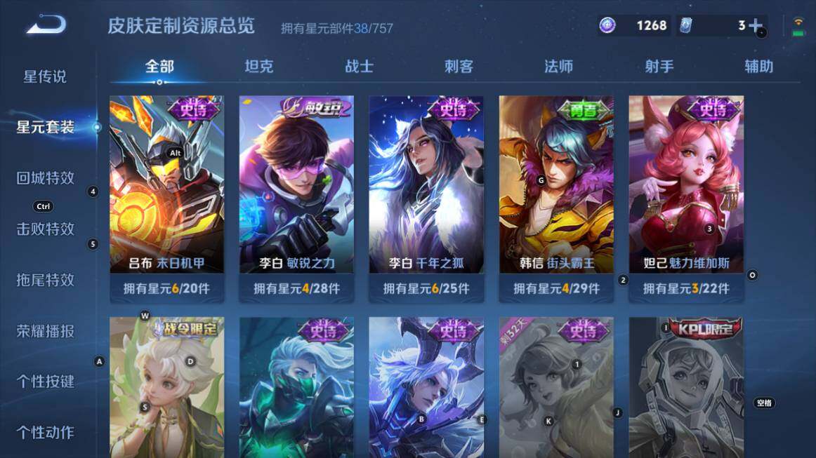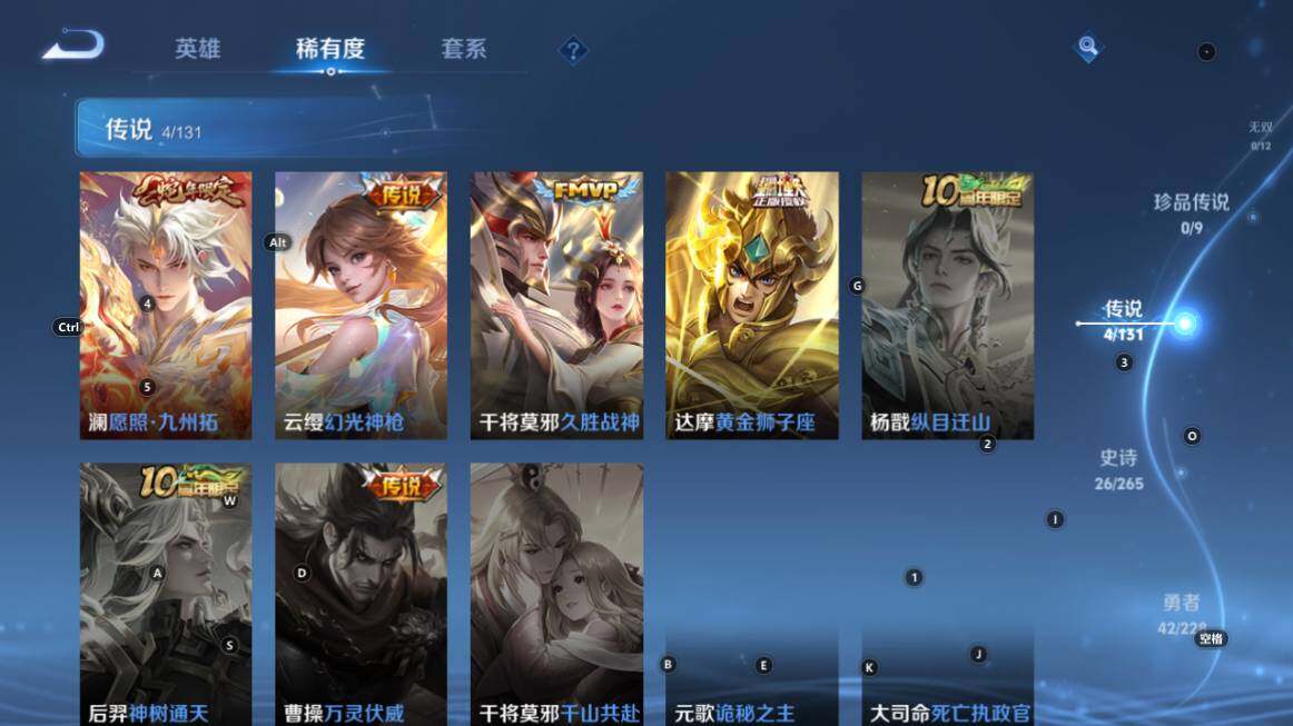 安卓Q-V5-115英雄-85皮肤-4传说-26史诗【英雄全皮】:空空儿全皮