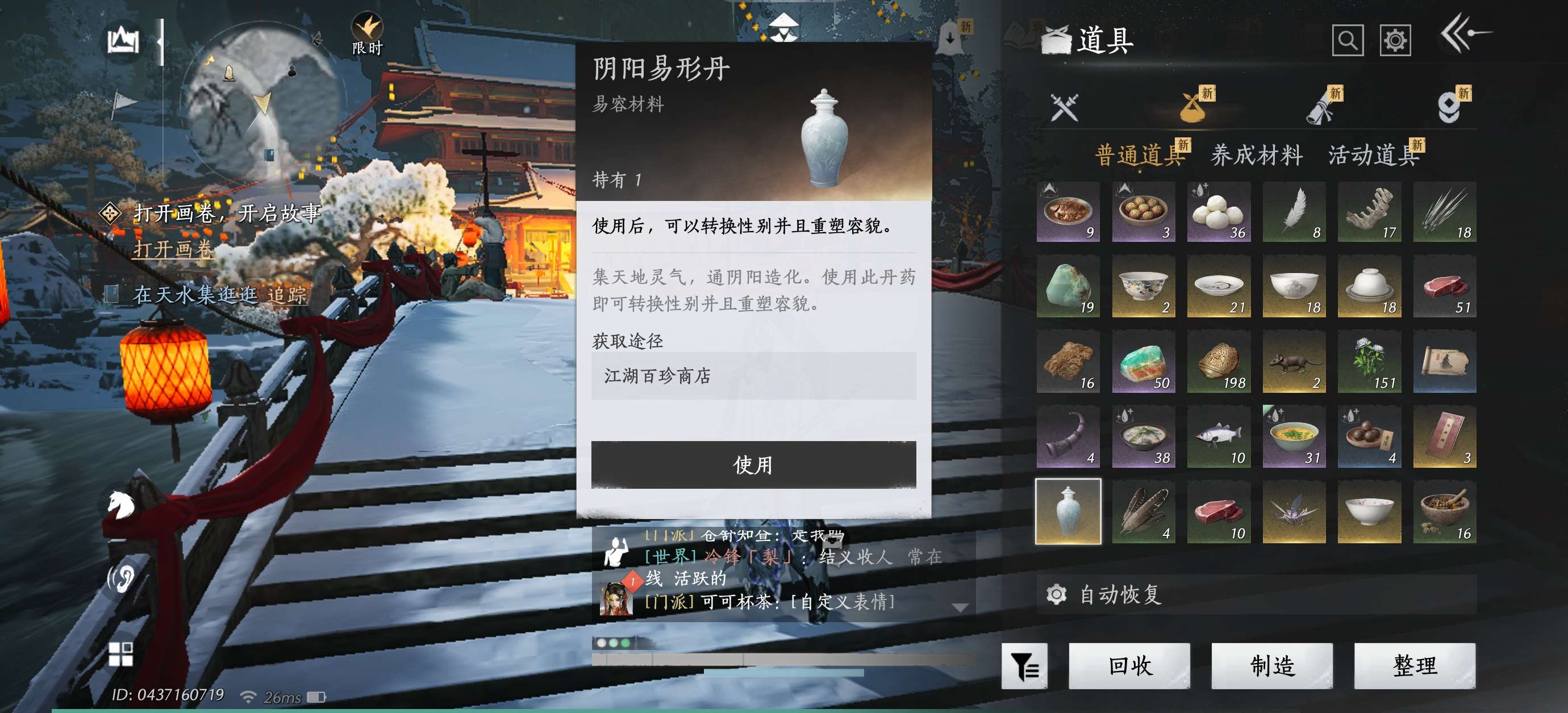 2个八音窍,阴阳易形丹,20抽袅袅之音,已满级。