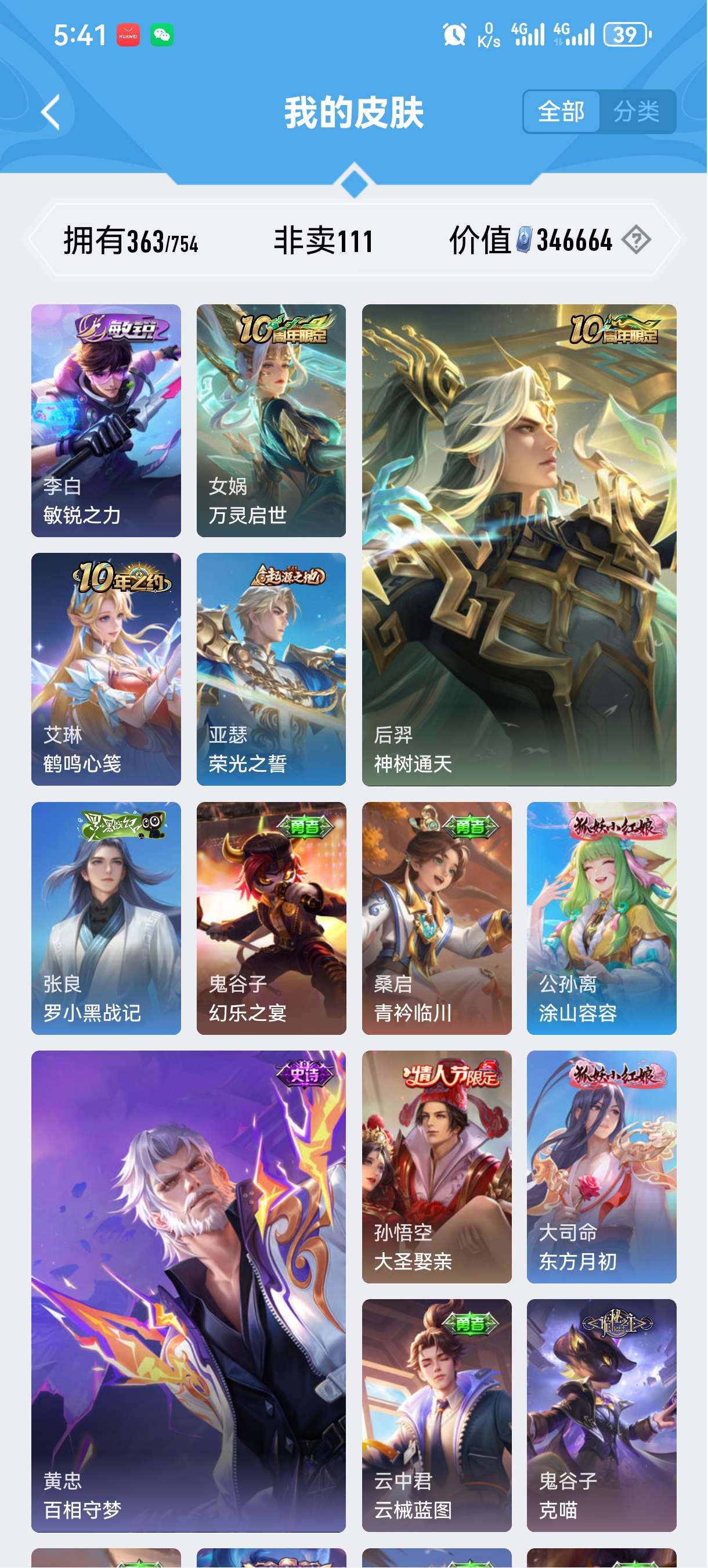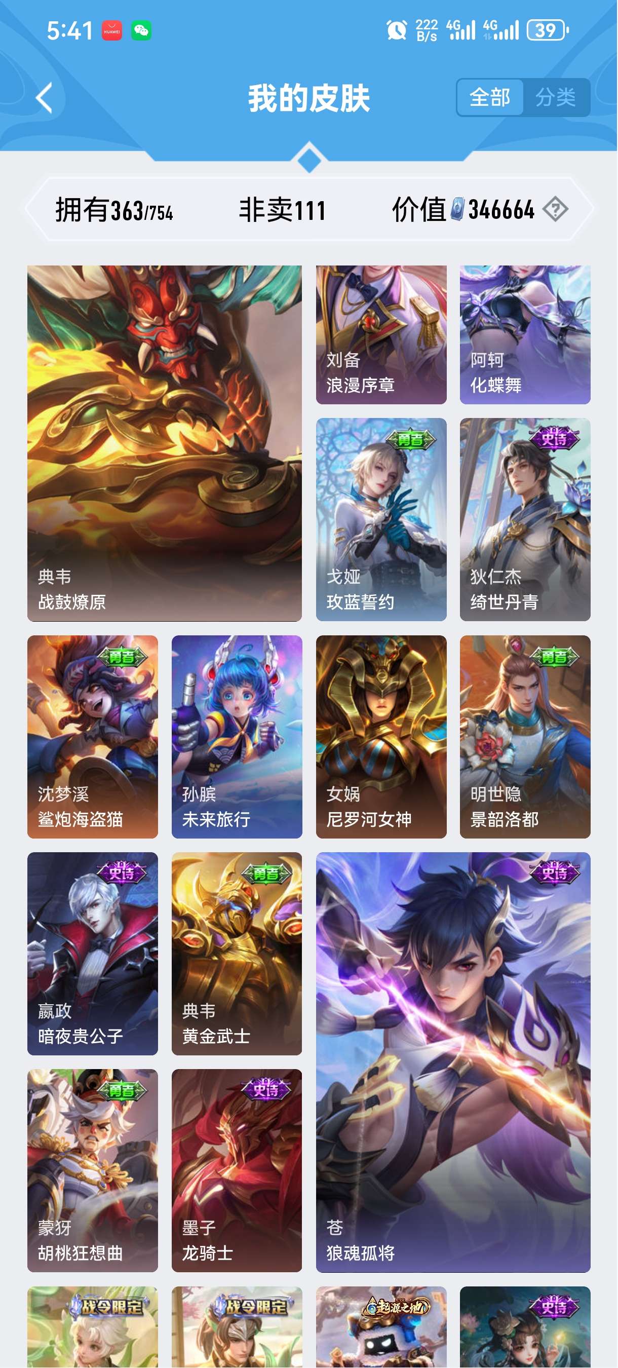 苹果微信 皮肤363 英雄128 至尊星耀 荣耀典藏5 无双皮肤1 珍品传说1 传说31 其他皮肤113-苹果微信v10游戏账号