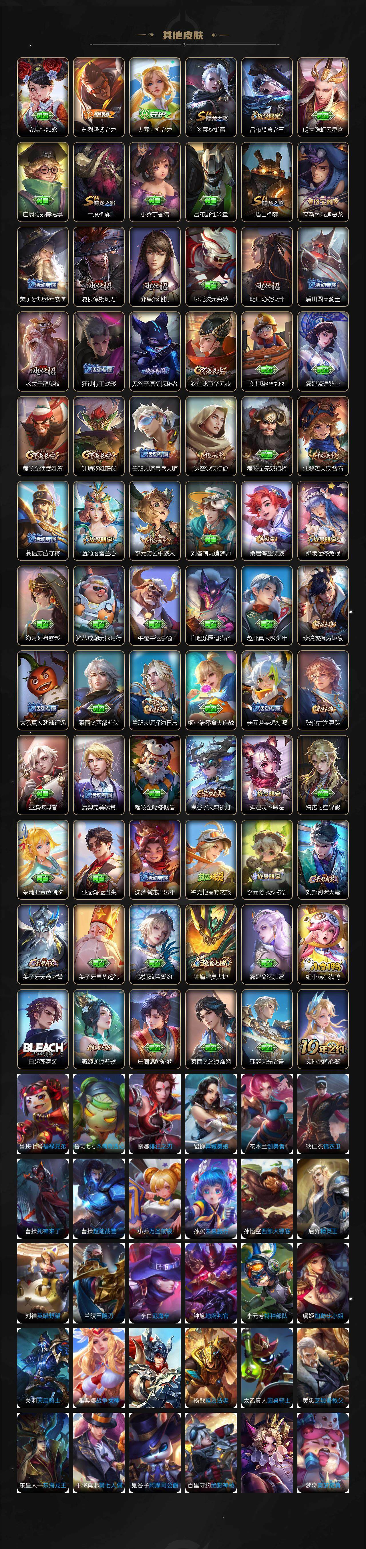 【传说皮肤】:后羿神树通天,伽罗炽翼辉光,孙悟空齐天大圣,李信山海炽霜斩,吕布怒海麟威,李白诗剑行,李信一念神魔,达摩黄金狮子座,孙尚香末日机甲
