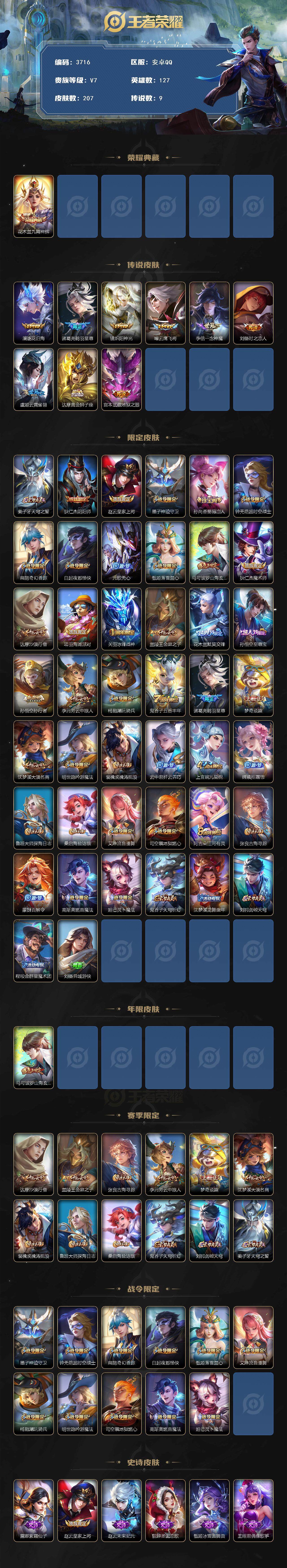 安卓Q-V7-最强王者段位-127英雄-207皮肤-1典藏皮肤-9传说-57史