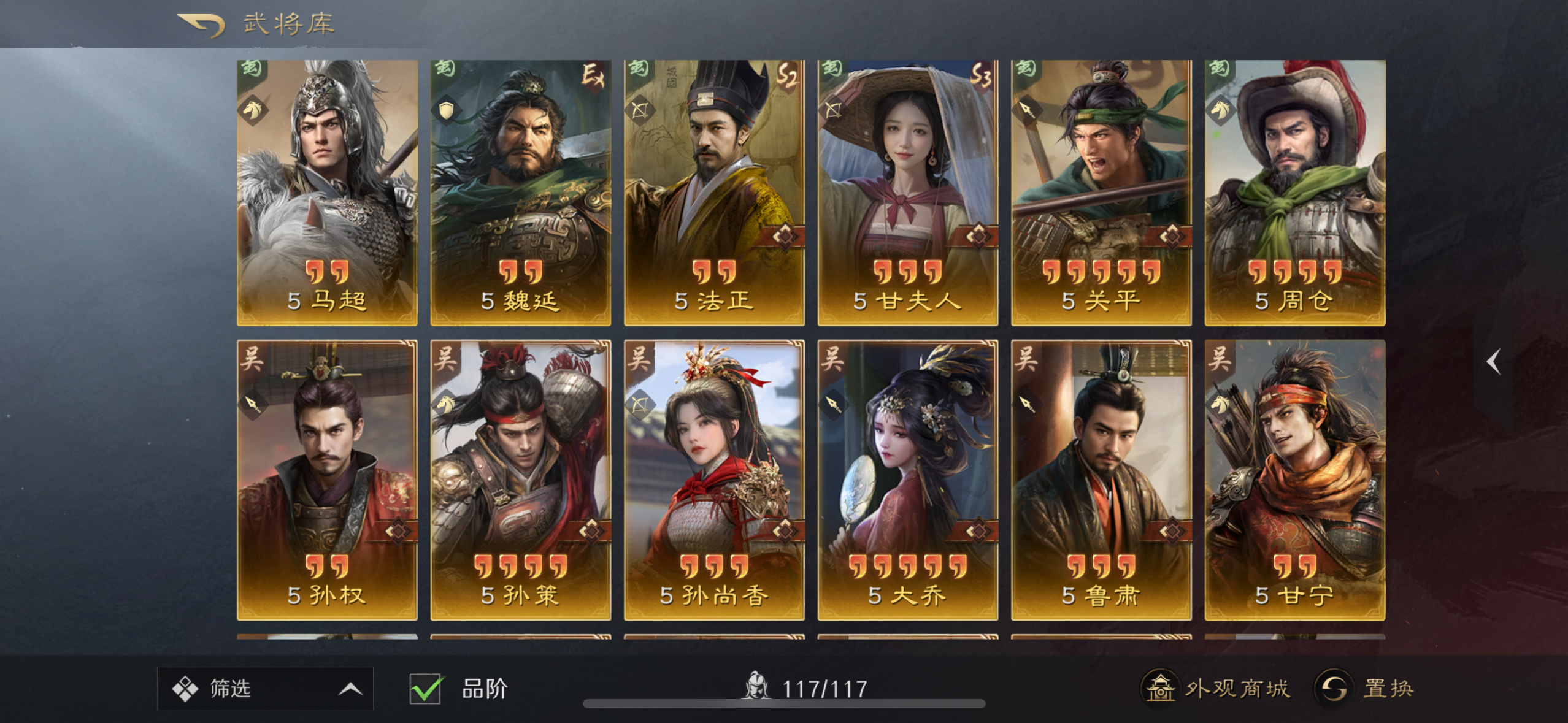 全图1.7万金币,全图鉴,核心全带红,4红诸葛,三皇221(包里2三皇信物),4红马妹周瑜左慈等,其他基本核心中高红,红马2匹,神装齐全,专属特技齐。8霸业6问鼎,带最新武将自选包!万二氪度0.5折出