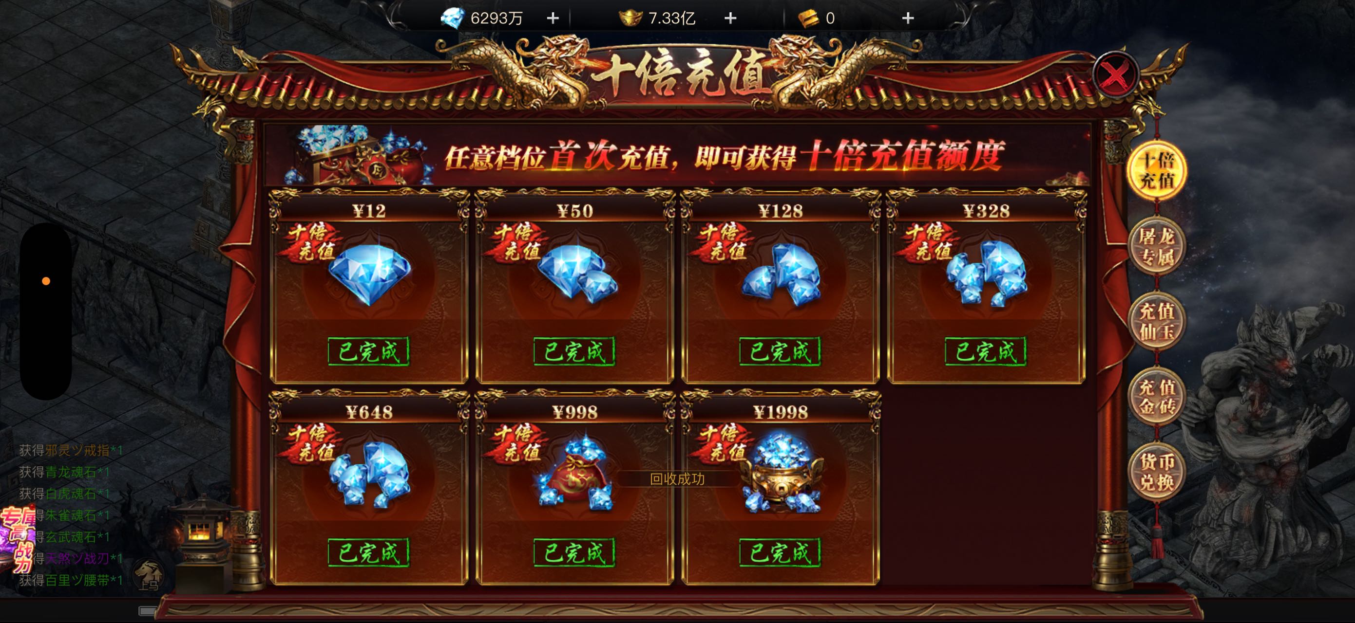公测15天万屠龙套十倍拉满棋子仓库还还有500多金砖