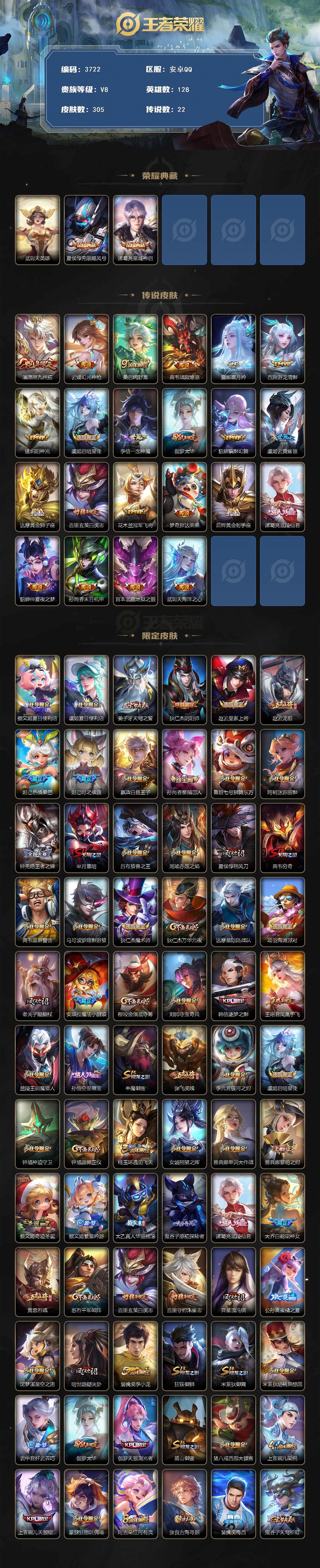 安卓Q-V8-最强王者段位-128英雄-305皮肤-2典藏皮肤-1典藏英雄-2