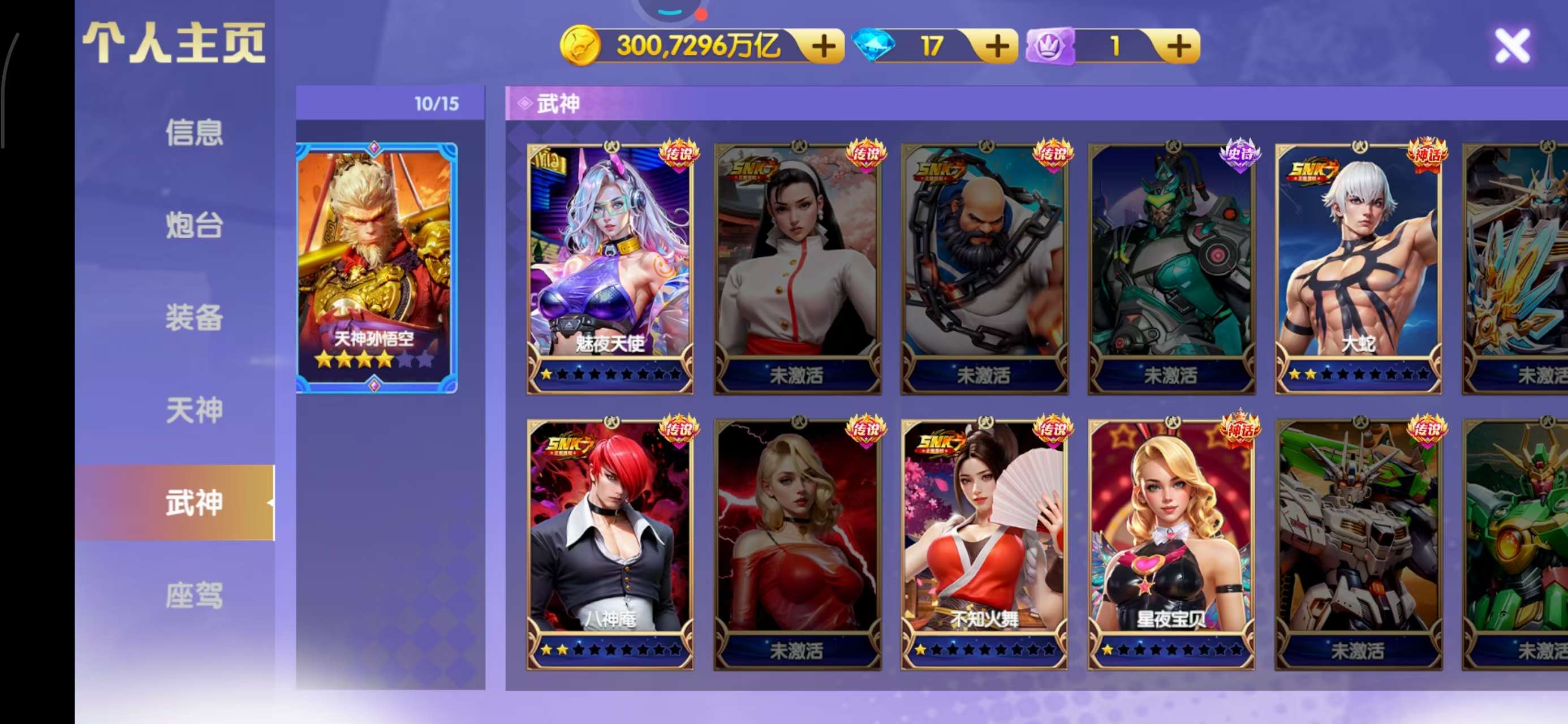 小米神装1.5万炮,300京,三级洪荒1200连击,天王几十碎片6星,低价处理,8开头换绑一切。