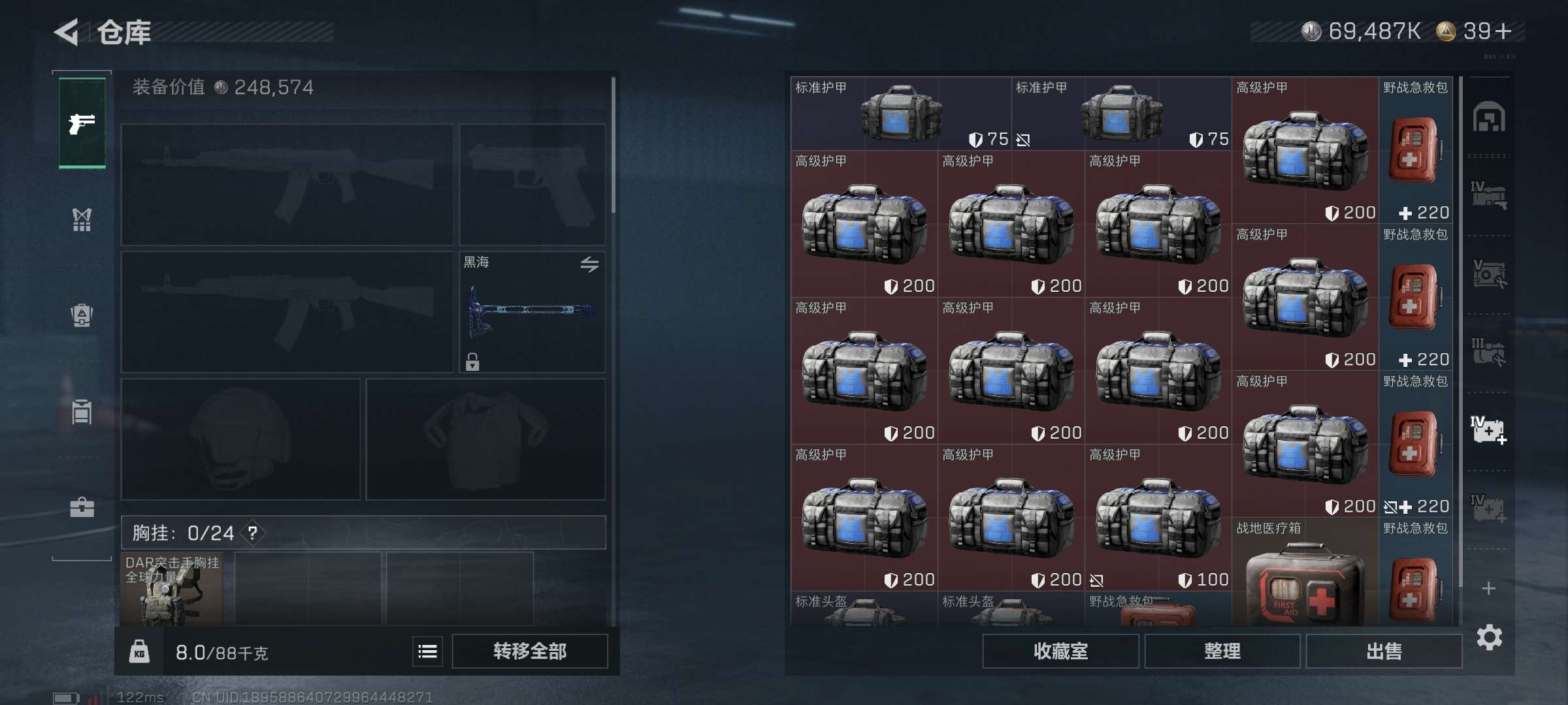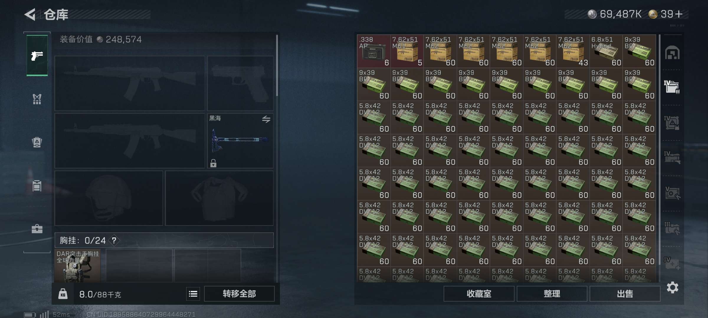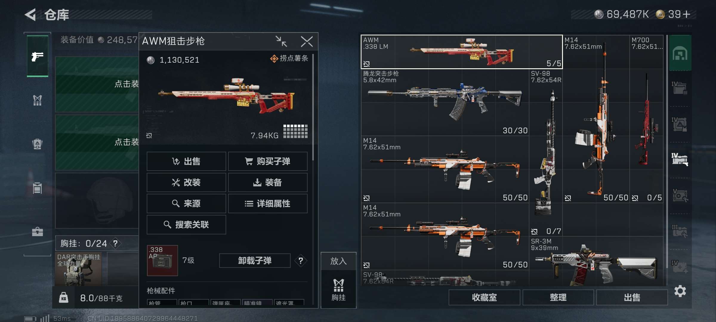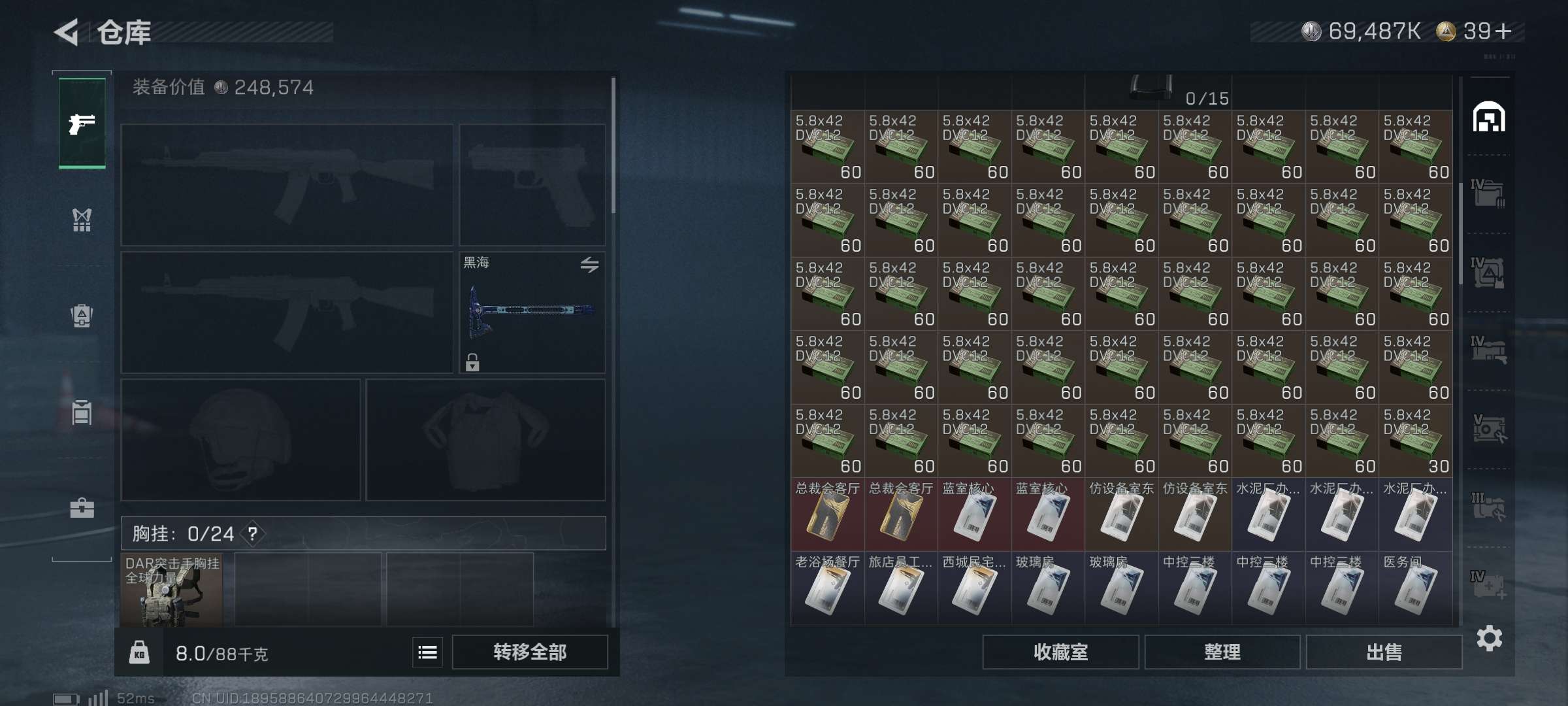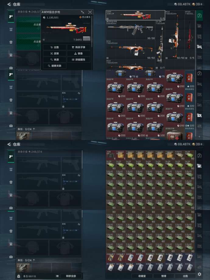 三角洲收藏室很多很多大红有两个心,也有许多皮肤,仓库很多五级弹