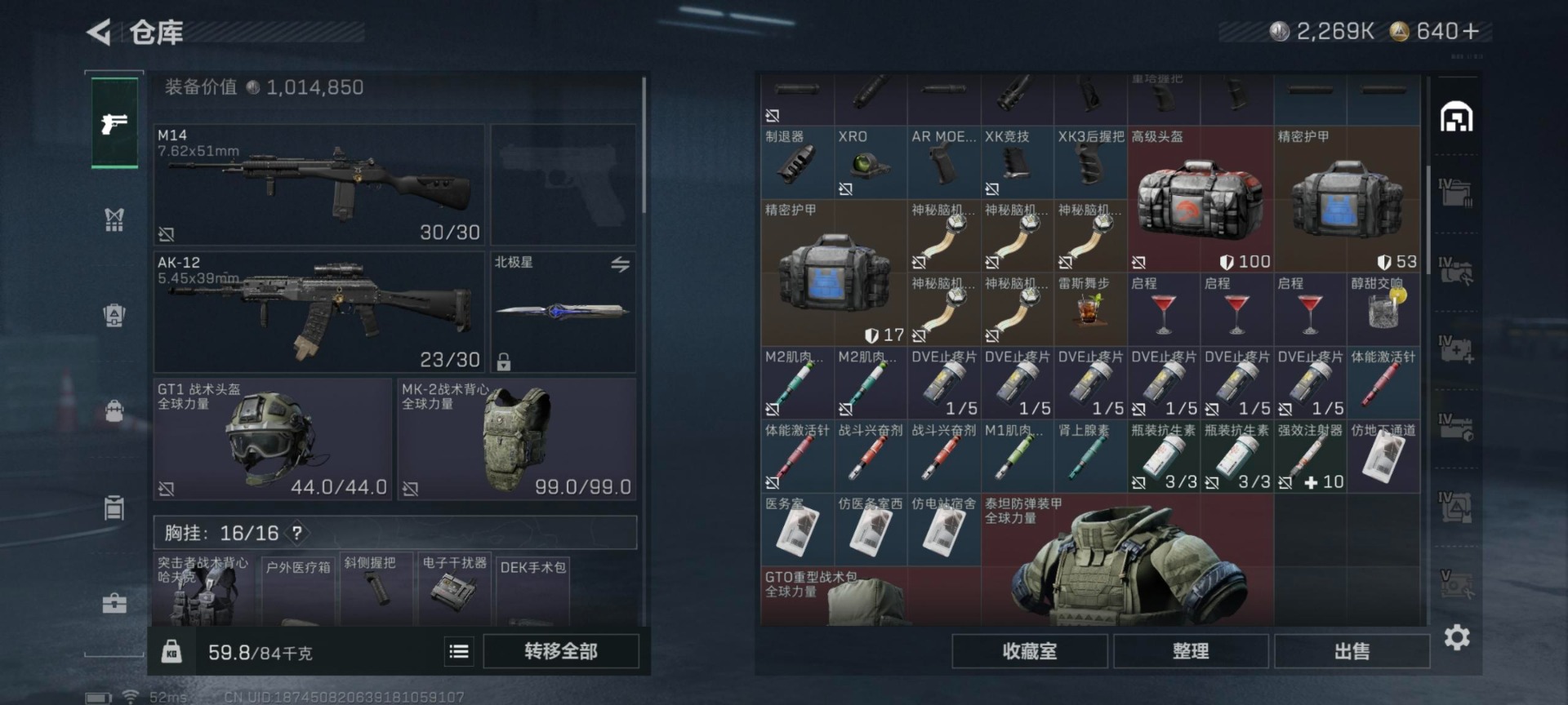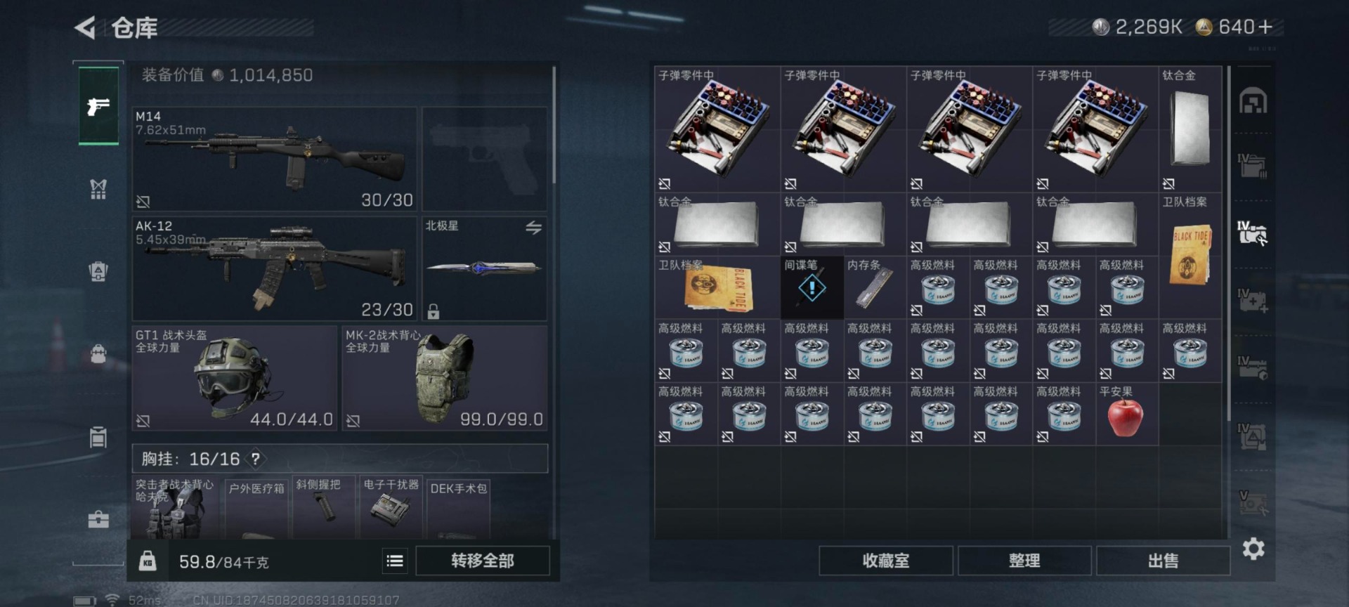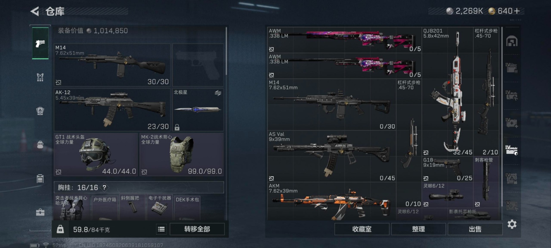 总资产:137.4M 4干员外观 1近战传说 20传说枪械 哈夫币:2.269K 可二次 可修改实名