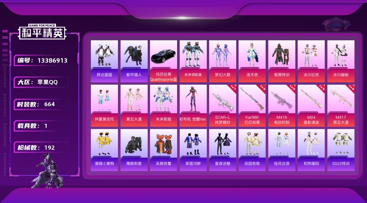 苹果手Q-可二次-10粉装-5特效-1载具 粉套-梦幻火箭,角色-洛天依-粉套-极限特训,粉套-冰川