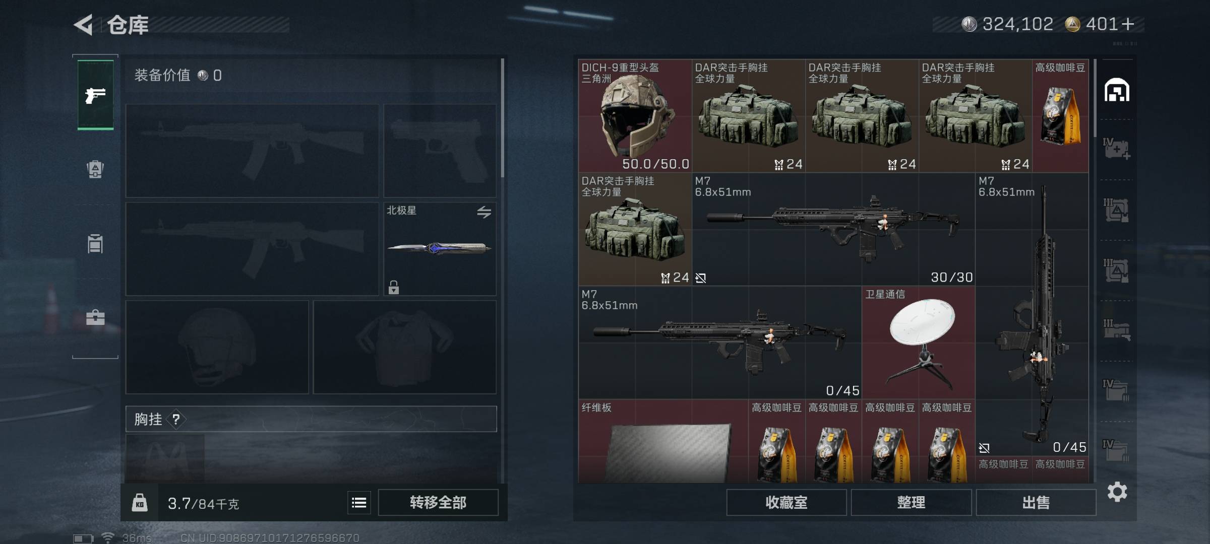 总资产148.5M 流动资产115.2M 哈夫币324k 2刀 1红皮 2金皮 顶级安全箱 仓库lv