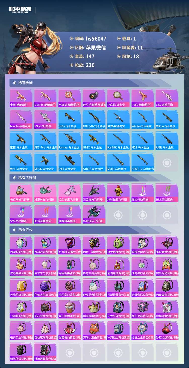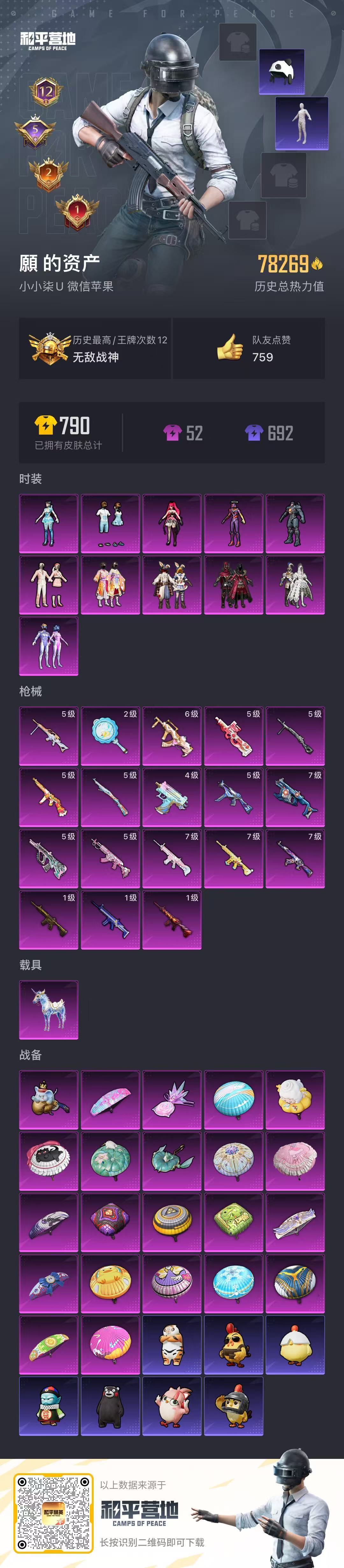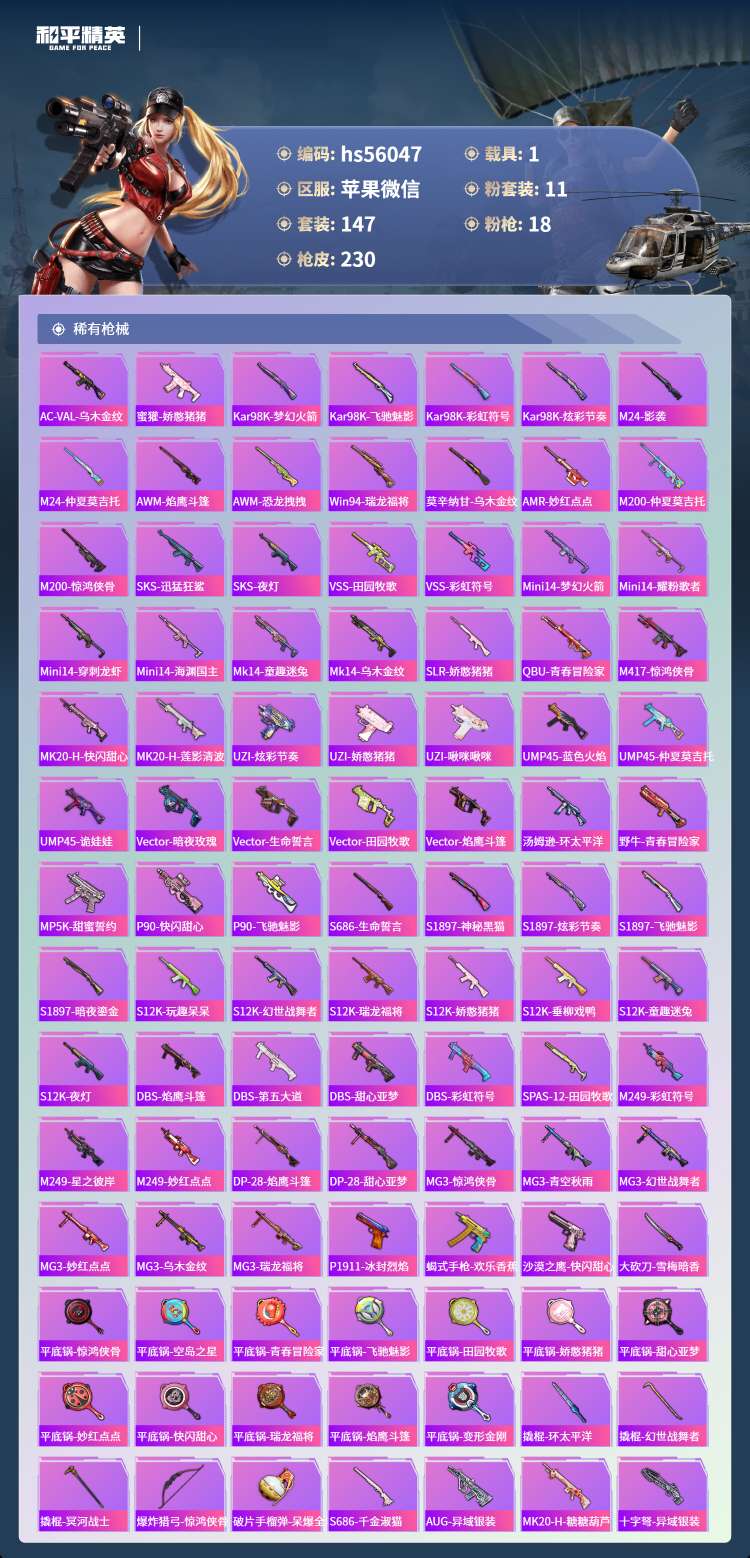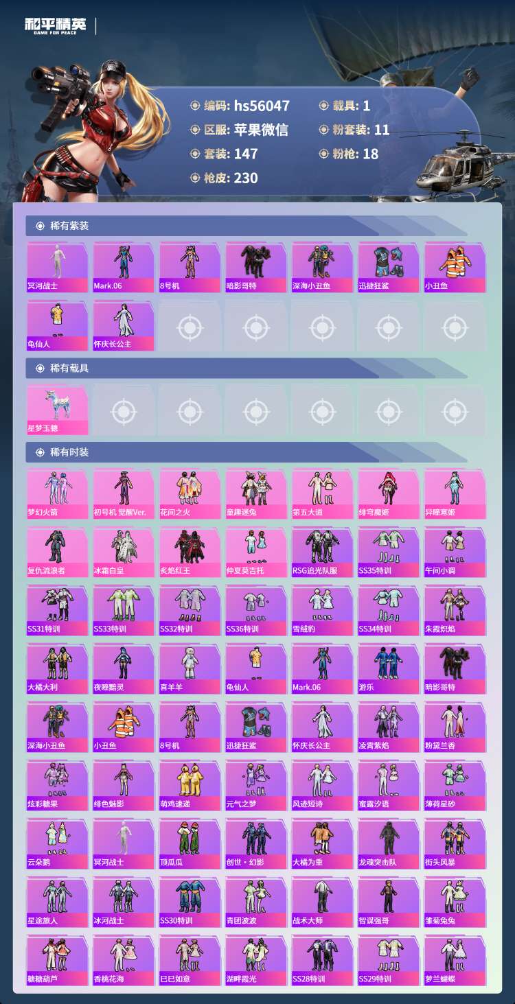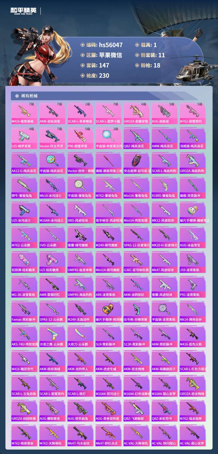 hs56047 苹果v-12王牌印记-有战神框-11粉装-18特效枪-1载具-78269热力值-1