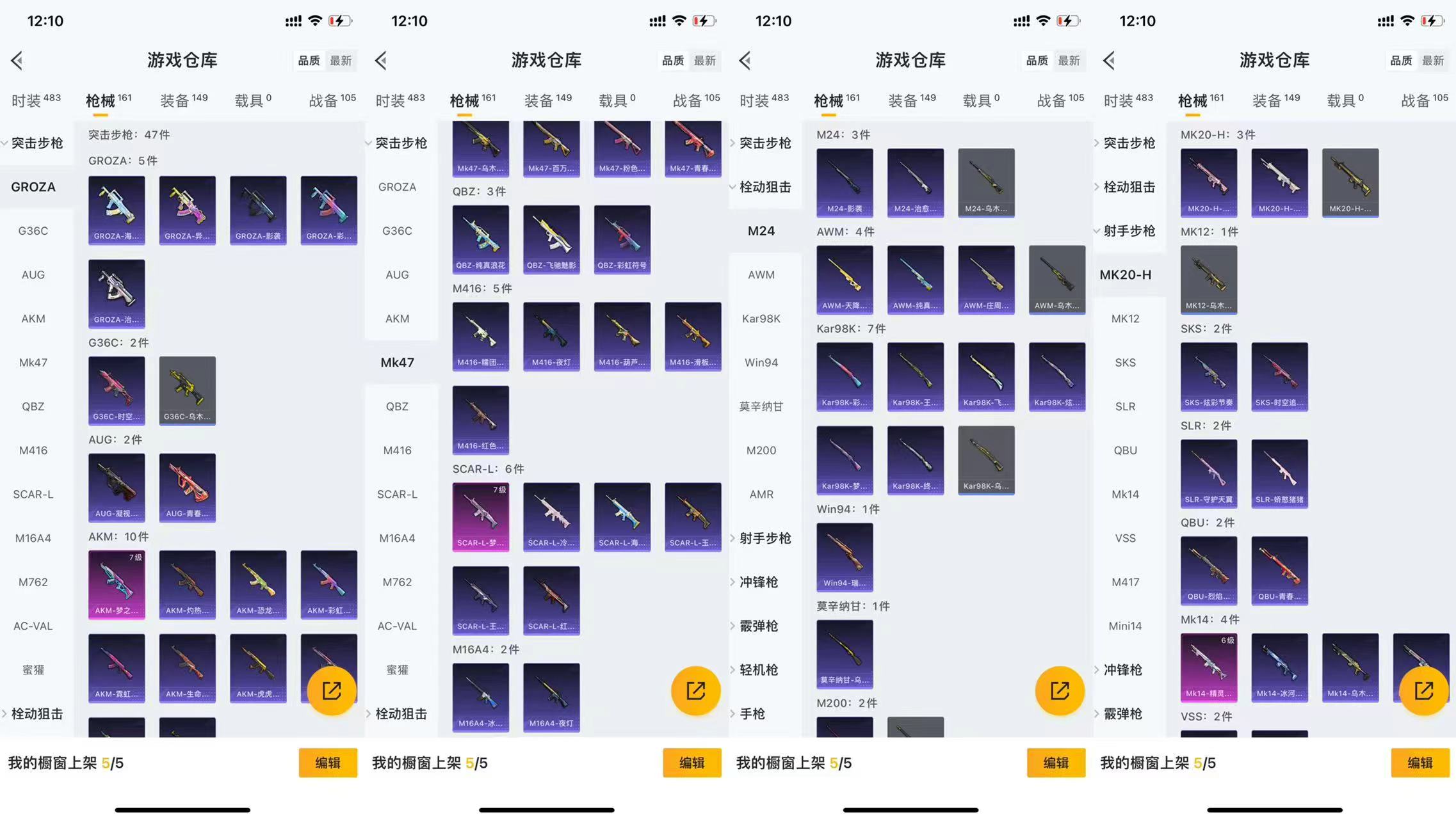 H12275【身法素材号-15王牌印记-7级SCAR-L-梦幻火箭-7级AKM-梦之光华-6级Mk1