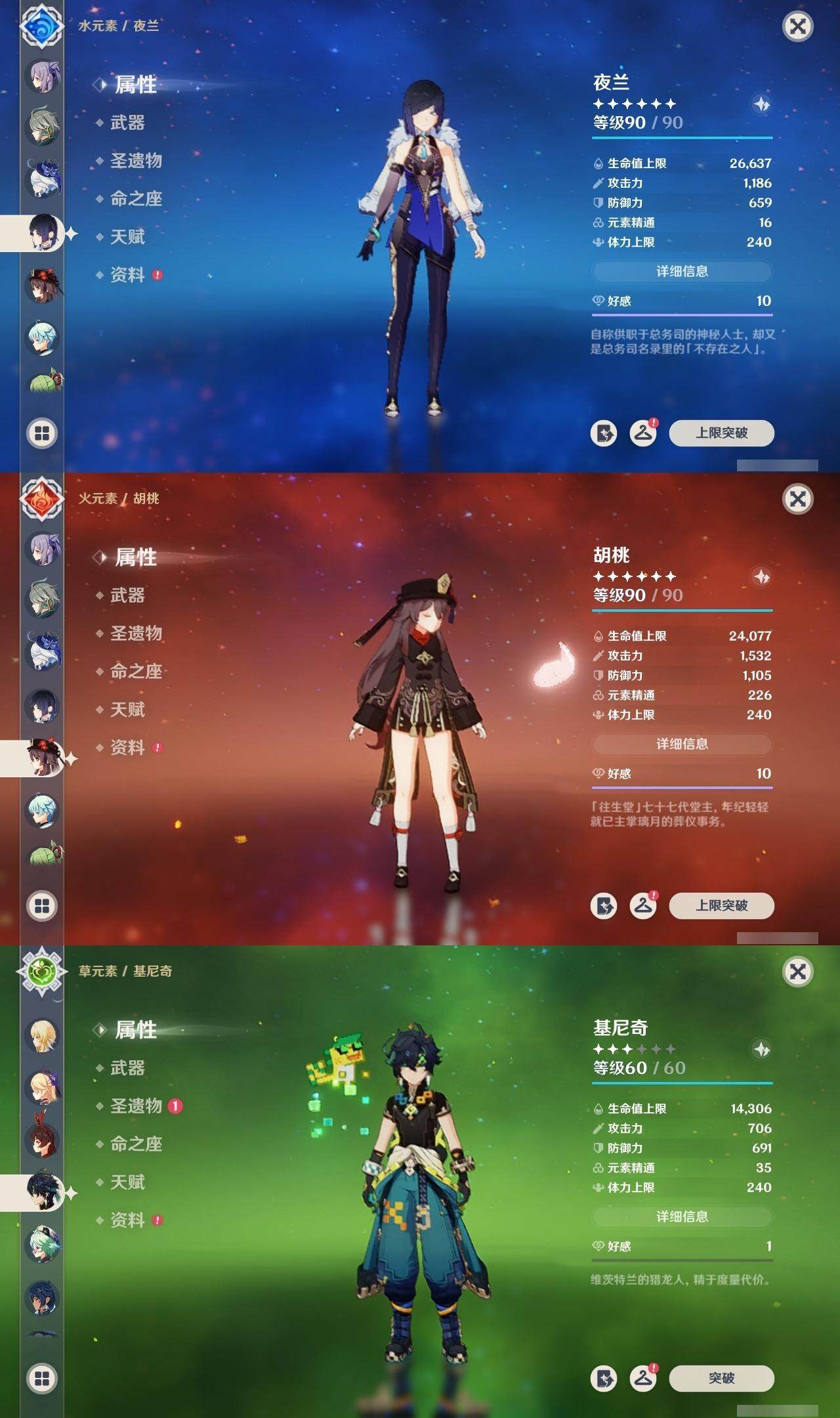 60级/44黄/女主/24个五星角色/12个五星武器
