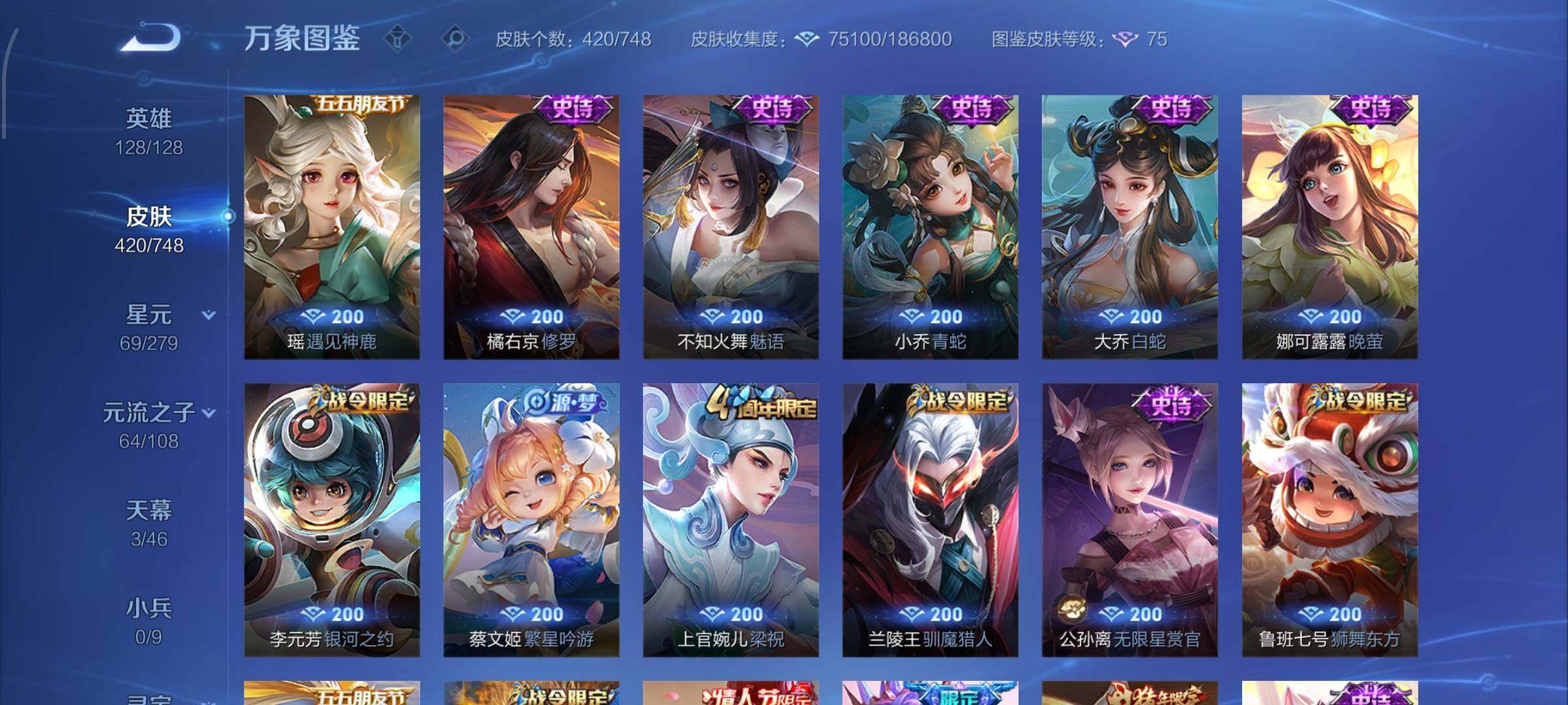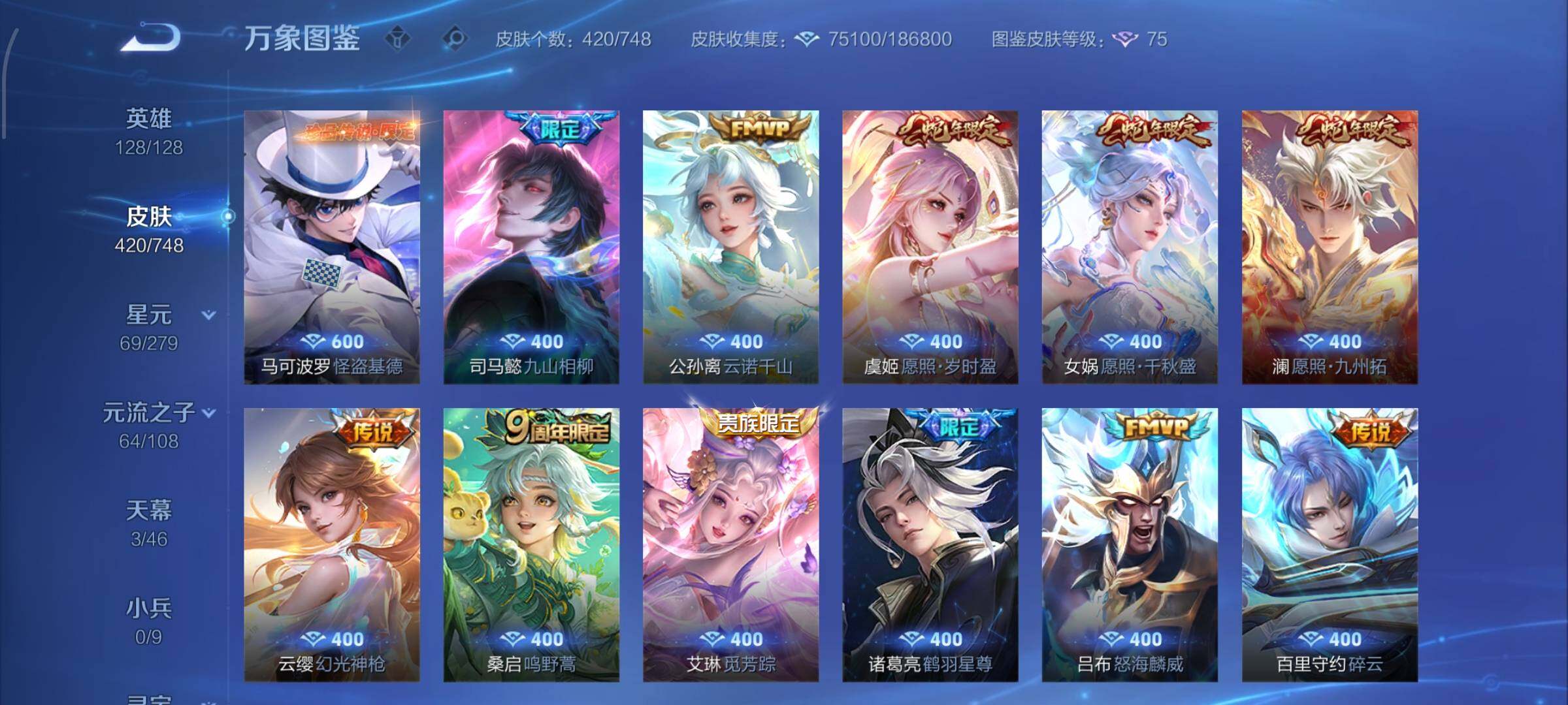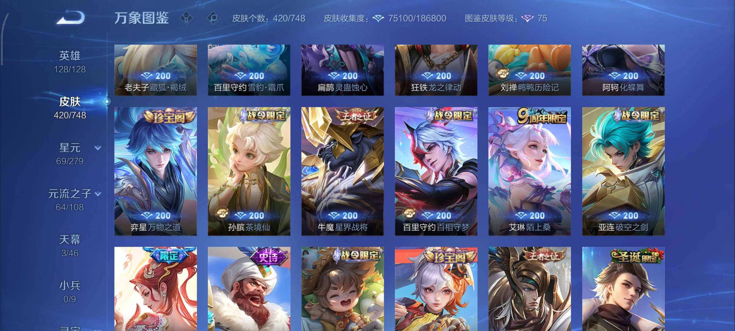 【店铺主推v10·5典藏·1珍品无双·3无双·5珍品·7星传说·2精品天幕·馥梦繁花·幻阙歌·神鉴启示录·最初的交响·雪境奇遇·韩信群星魔术团·天机白泽·拉酷洛米之心·基德·柯南·兔狲蓬尾·天机无算天幕·繁花交响诗天幕·岁雨灵司·太华红枫·天魔缭乱·可二次】YXw9785-安卓Q-129英雄-420皮肤-24王者印记-300铭文-贵族积分19w【贵族10】【v10·