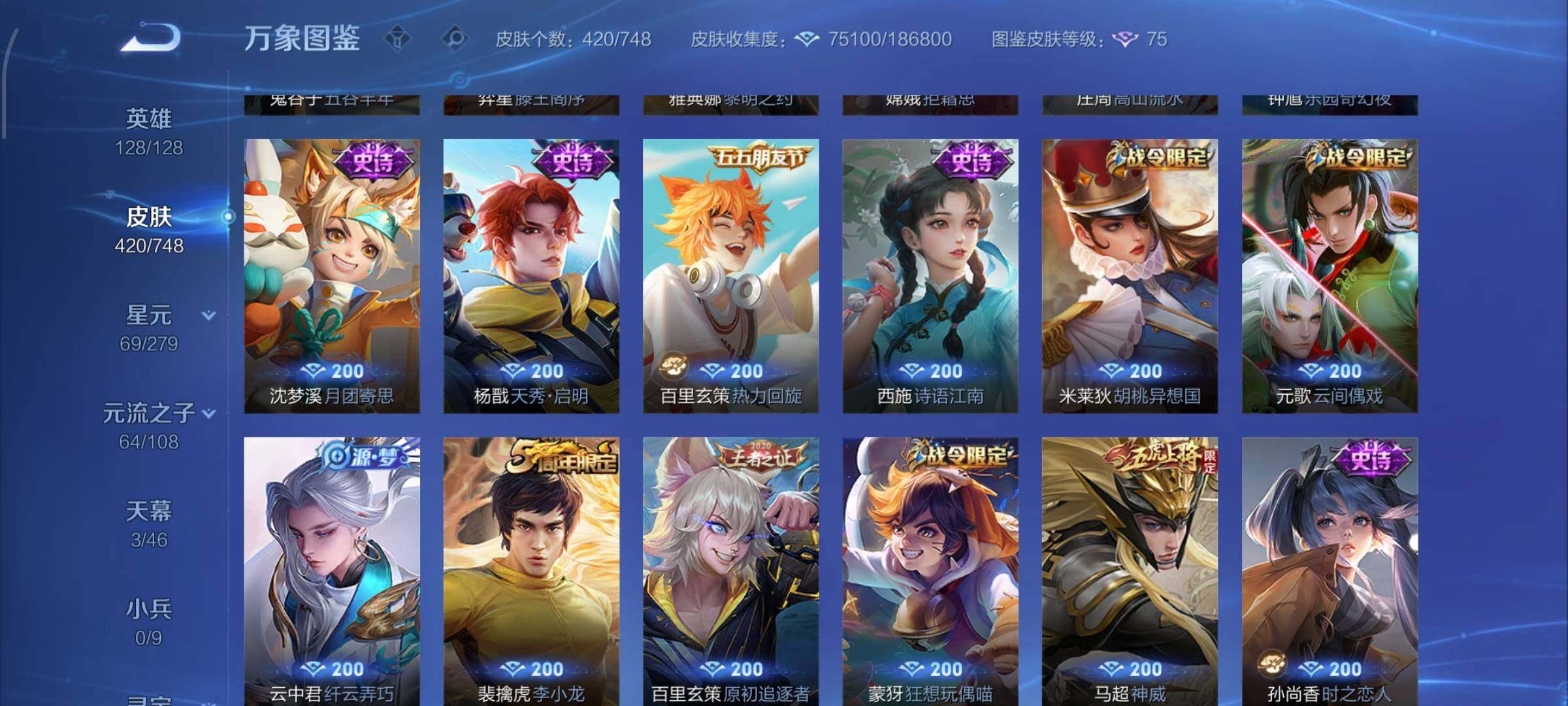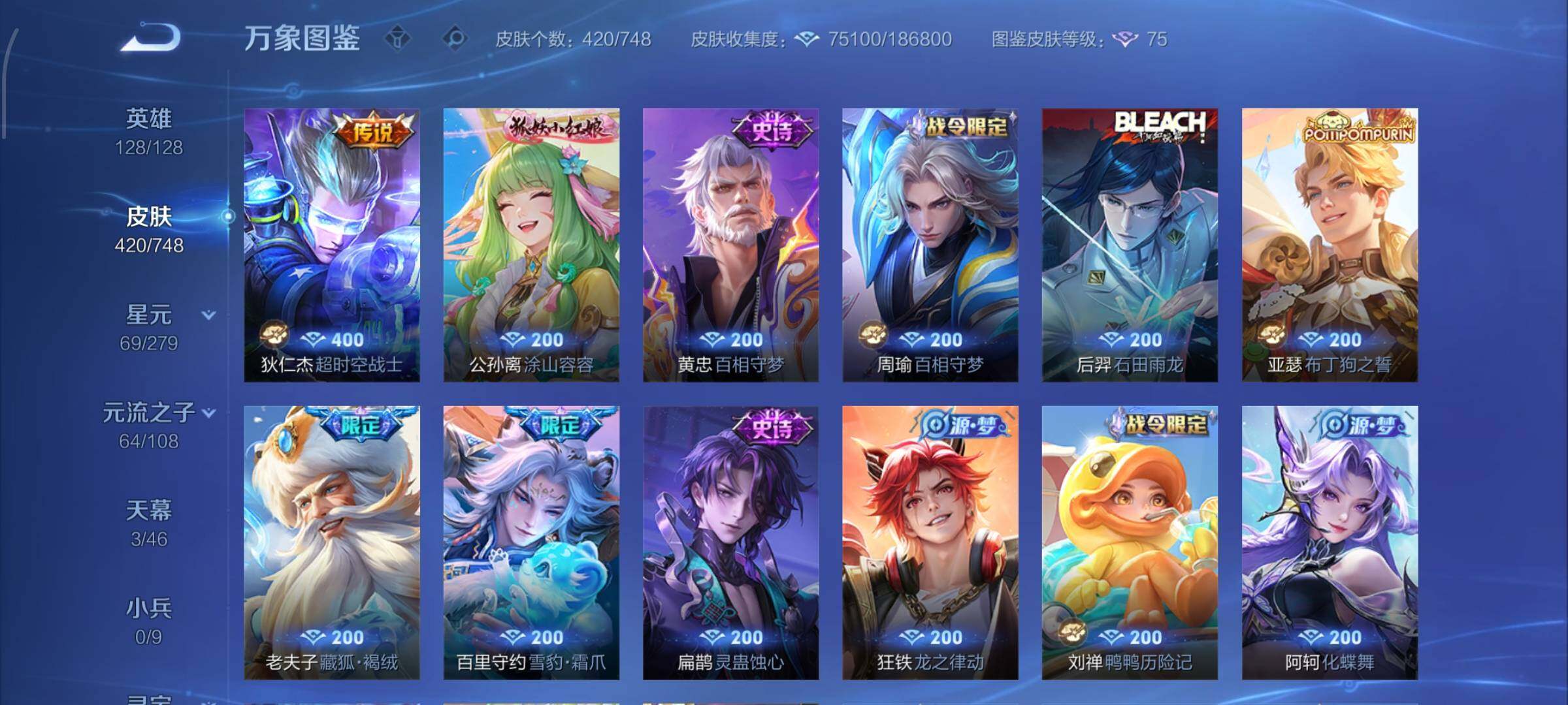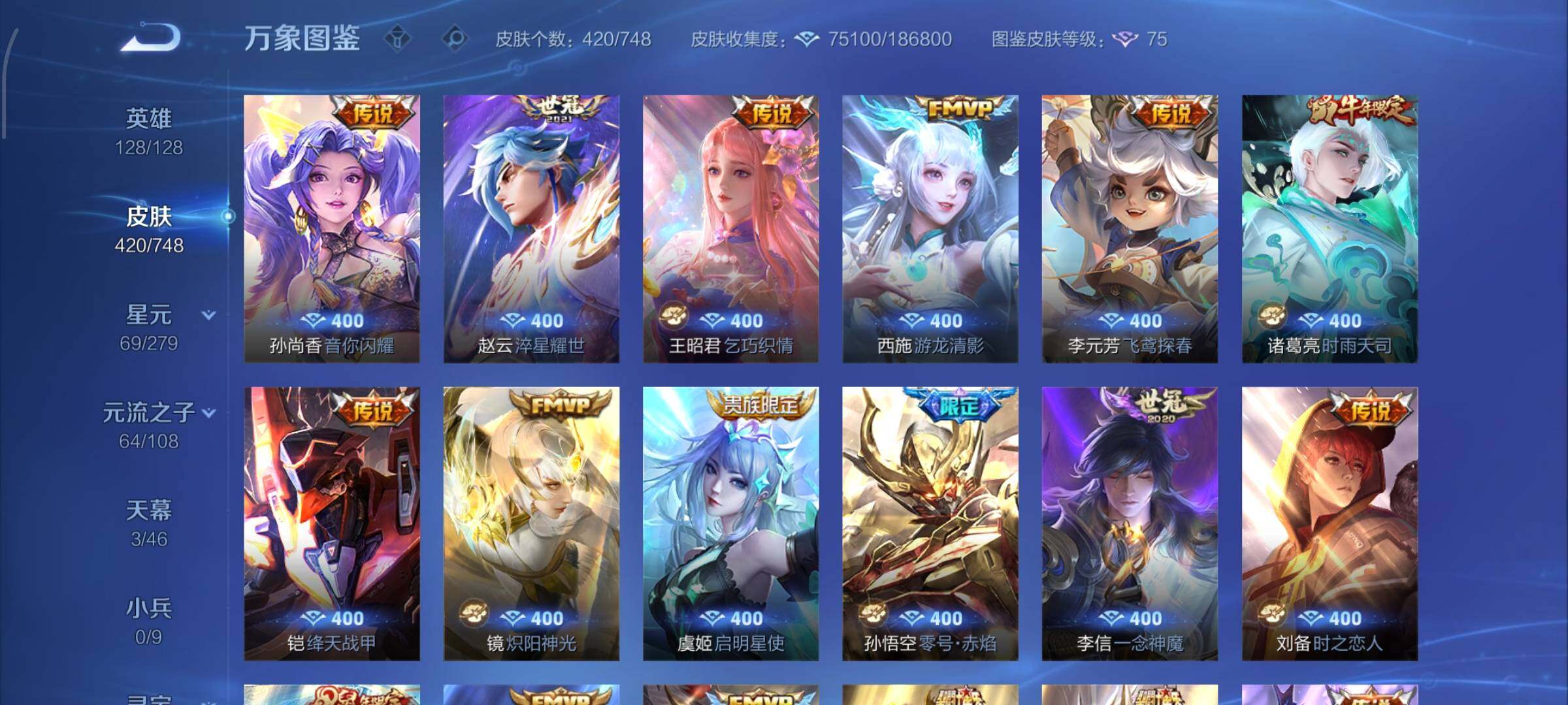 【店铺主推v10·5典藏·1珍品无双·3无双·5珍品·7星传说·2精品天幕·馥梦繁花·幻阙歌·神鉴启示录·最初的交响·雪境奇遇·韩信群星魔术团·天机白泽·拉酷洛米之心·基德·柯南·兔狲蓬尾·天机无算天幕·繁花交响诗天幕·岁雨灵司·太华红枫·天魔缭乱·可二次】YXw9785-安卓Q-129英雄-420皮肤-24王者印记-300铭文-贵族积分19w【贵族10】【v10·