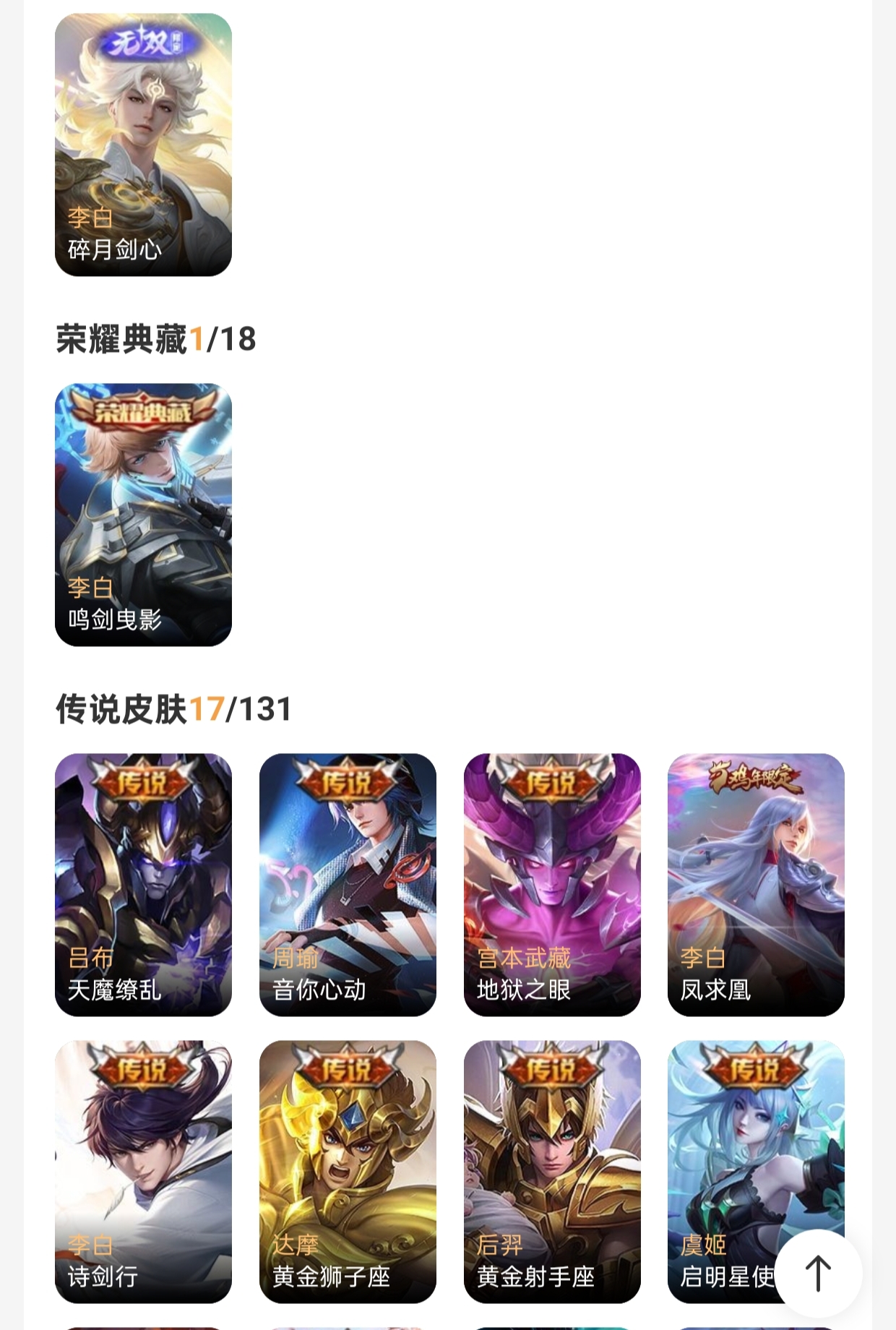 皮肤298 英雄126 最强王者 荣耀典藏1 无双皮肤1 传说17 其他皮肤120-1无双17传说81史诗