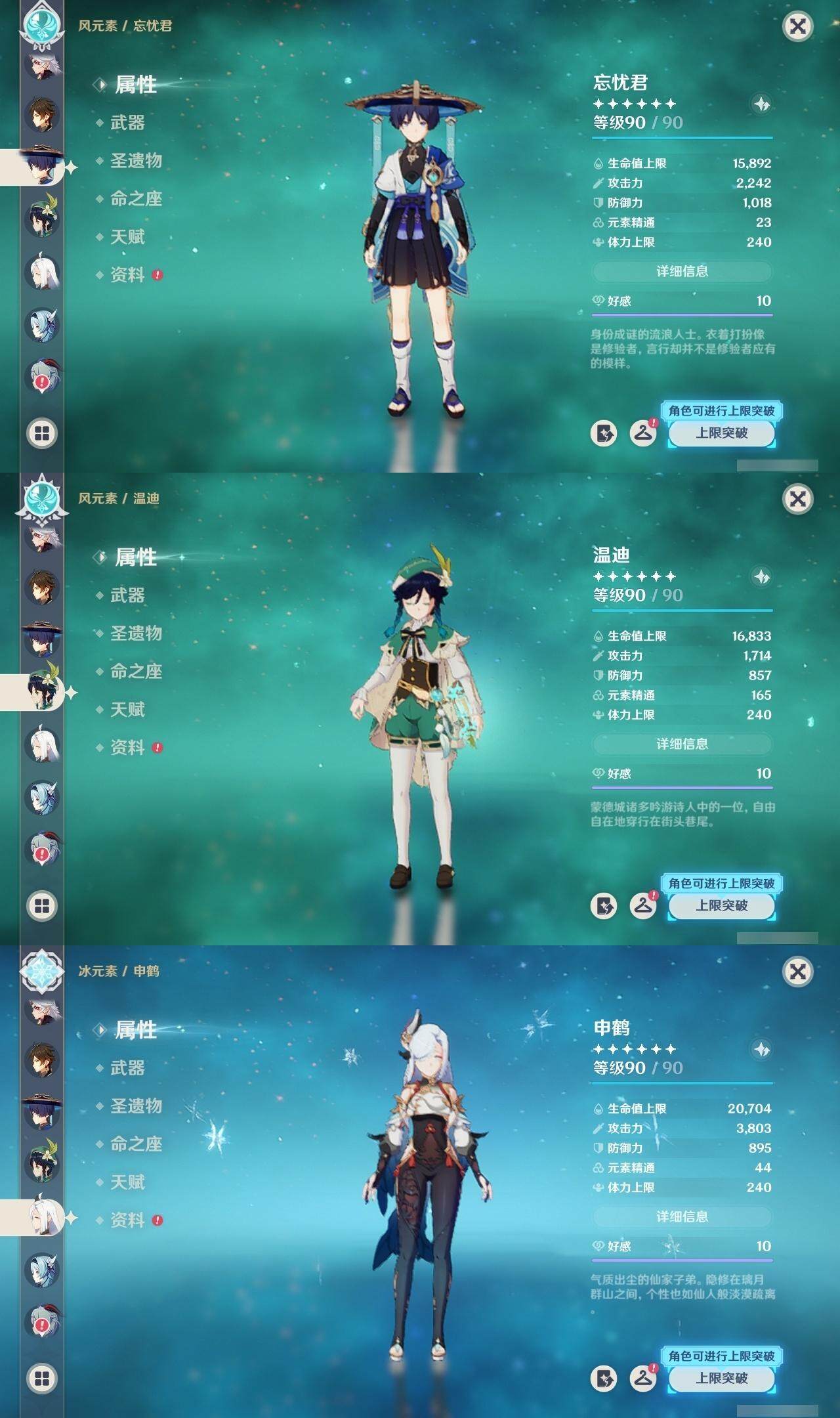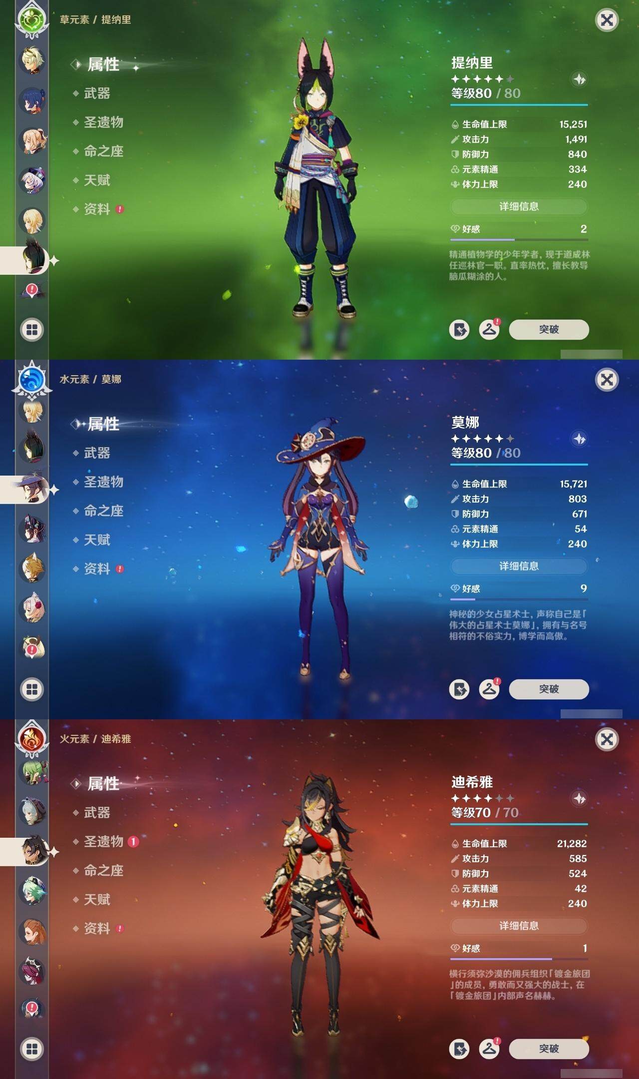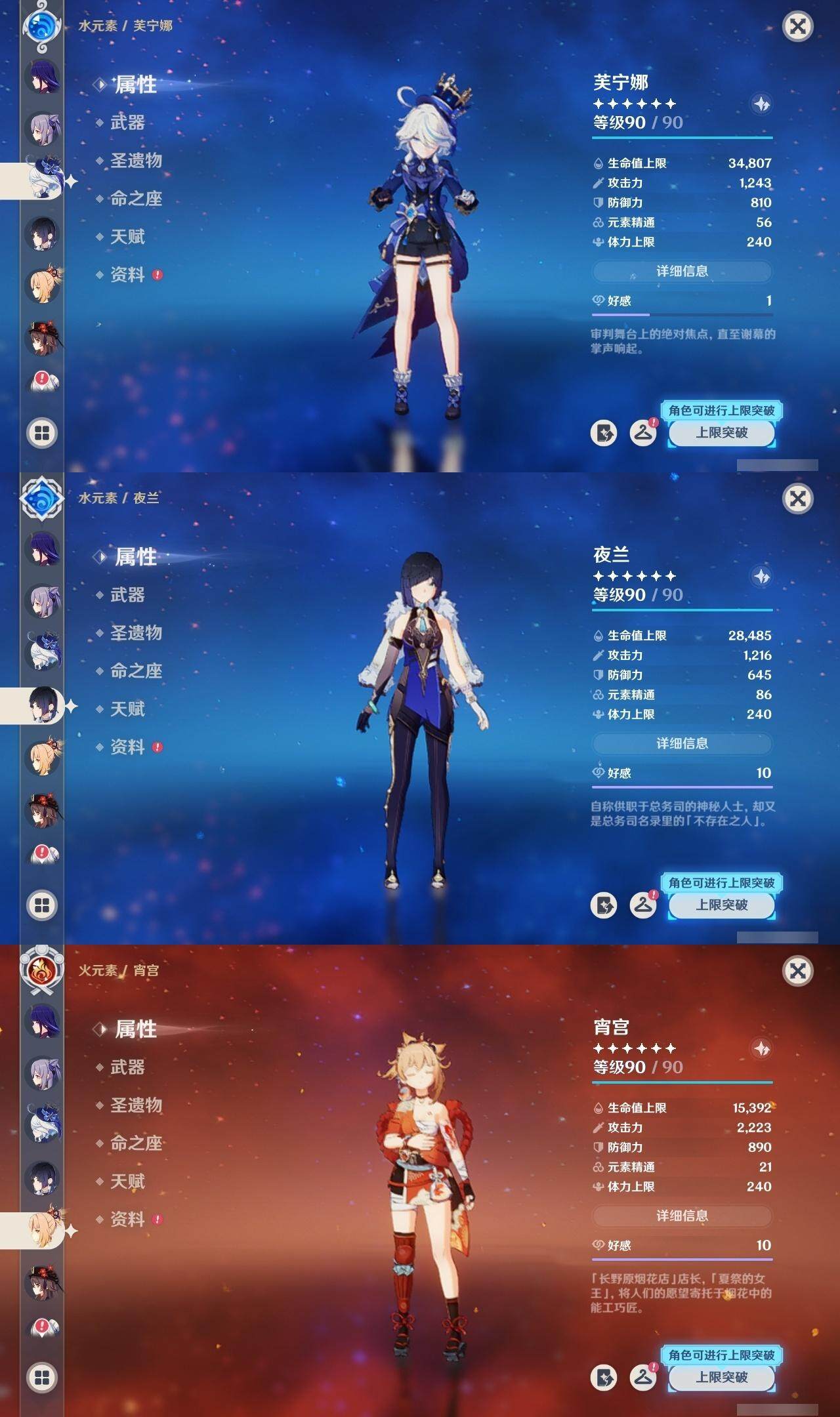 60级/51黄/女主/24个五星角色/17个五星武器