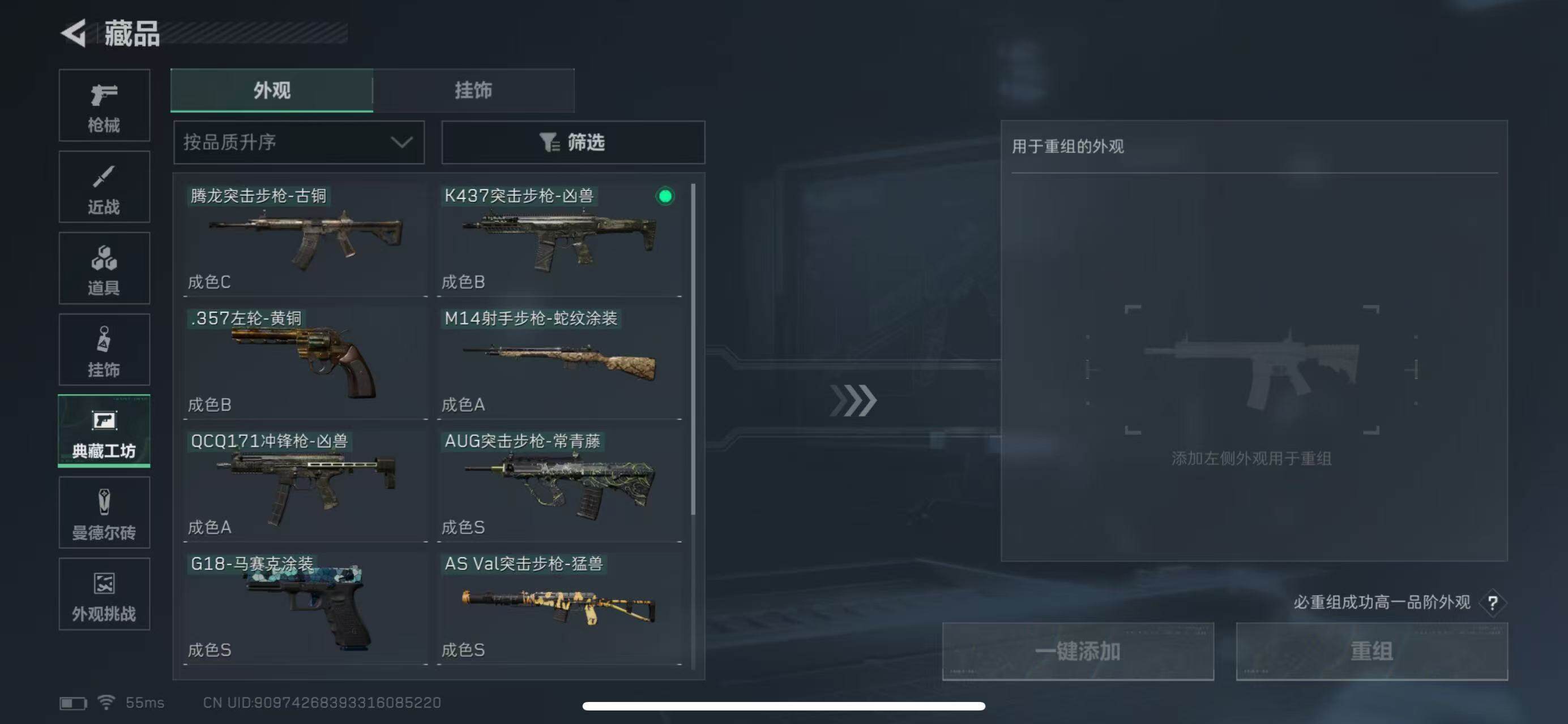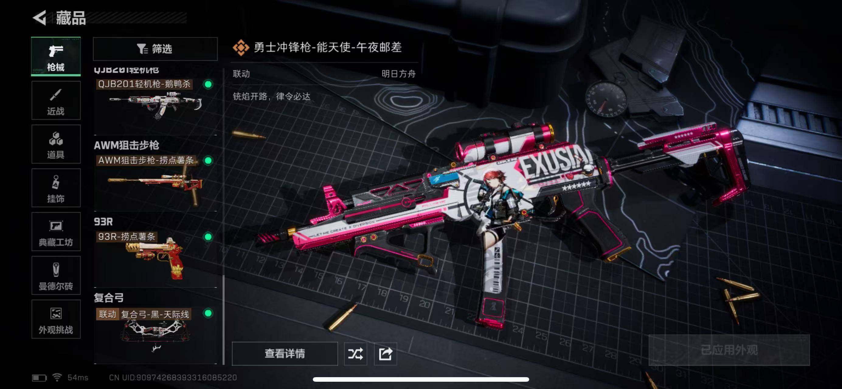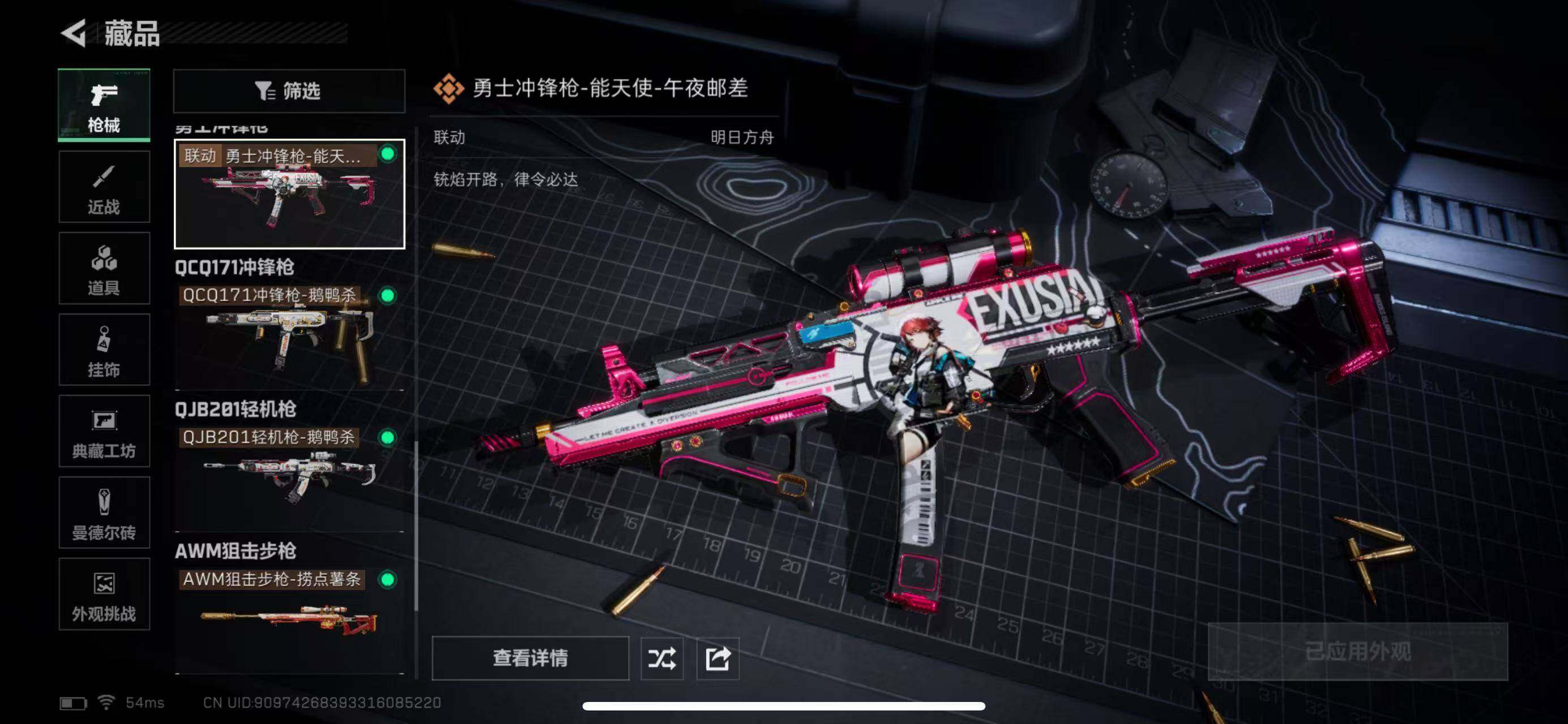 【传说外观】:M4A1突击步枪-阿米娅,ASh-12战斗步枪-鹅鸭杀,AK-12突击步枪-特斯拉线圈,SCAR-H战斗步枪-启航,CAR-15突击步枪-阿米娅,腾龙突击步枪-捞点薯条,UZI冲锋枪-特斯拉线圈,SR-3M紧凑突击步枪-特斯拉线圈,勇士冲锋枪-能天使-午夜邮差,QCQ171冲锋枪-鹅鸭杀,QJB201轻机枪