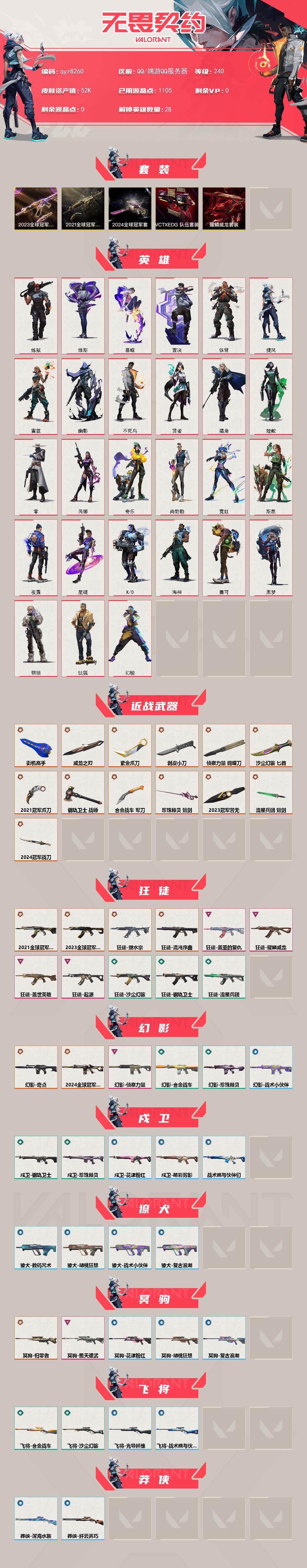 【qyz8260】【套装】:2024全球冠军赛套装,2023全球冠军赛套装,2021全球冠军赛套装,VCTxEDG 队伍套装,耀鳞威龙套装