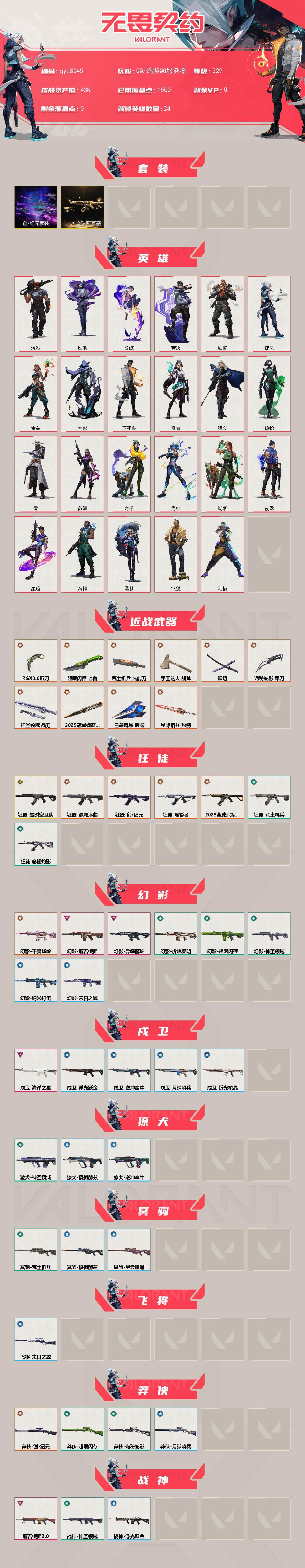 【英雄】:幻棱,炼狱,维斯,暮蝶,钛狐,壹决,铁臂,捷风,雷兹,幽影,不死鸟,贤者,猎枭,蝰蛇,零,芮娜,奇乐,霓虹,斯凯,夜露,星礈,海神,黑梦