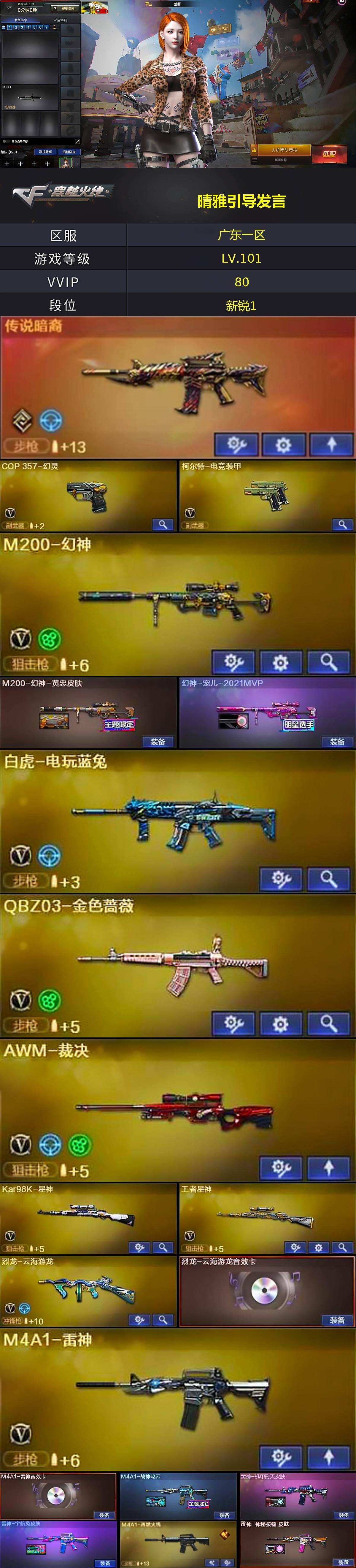 【热门武器】:传说暗裔,QBZ03-金色蔷薇,HK417-朱雀,M200-幻神,死亡之眼,白虎-电玩蓝兔,Kar98K-星神,炼狱-迷你小钢,M4A1-黑骑士,COP 357-幻灵,沙鹰-修罗*2