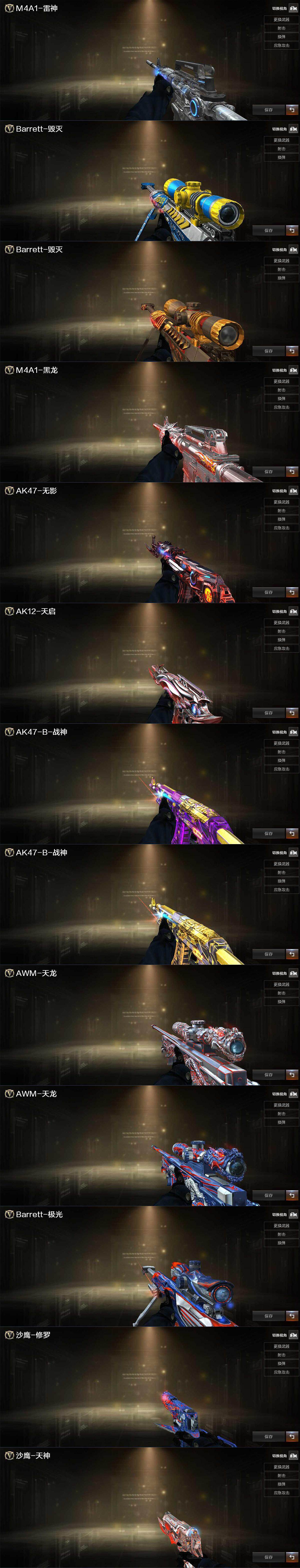 【热门武器】:QBZ03-金色蔷薇,M200-幻神,死亡之眼,M4A1-黑骑士*2,汤姆逊-烈龙*2,沙鹰-修罗*5