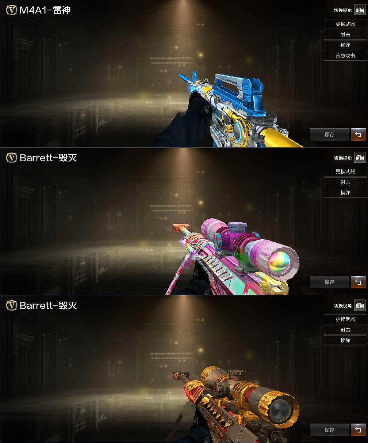 【英雄级武器】:M4A1-雷神,AK47-黑武士,M4A1-龙血,HK417-朱雀,M14EBR-玄武,Q