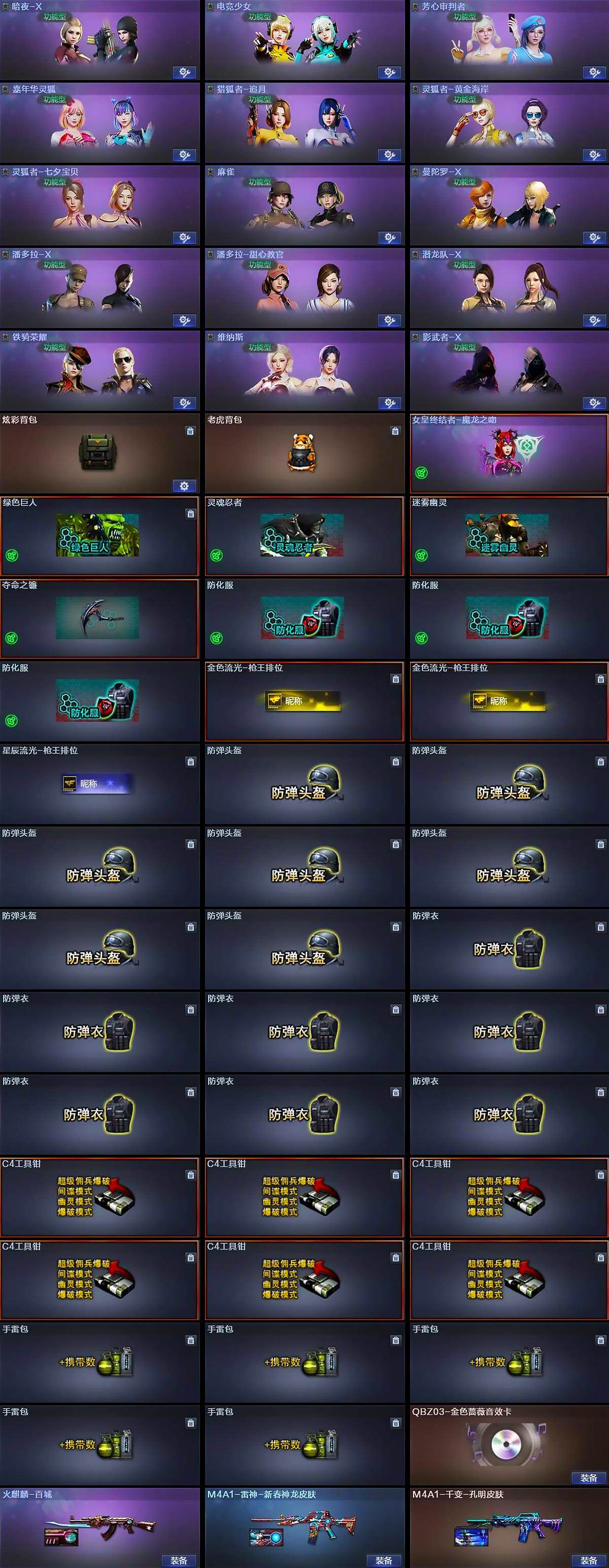 【角色】:暗夜-X,电竞少女,芳心审判者,嘉年华灵狐,猎狐者-追月,灵狐者-黄金海岸,灵狐者-七夕宝贝,麻雀,曼陀罗-X,潘多拉-X,潘多拉-甜心教官,潜龙队-X,铁骑荣耀,维纳斯,影武者-X