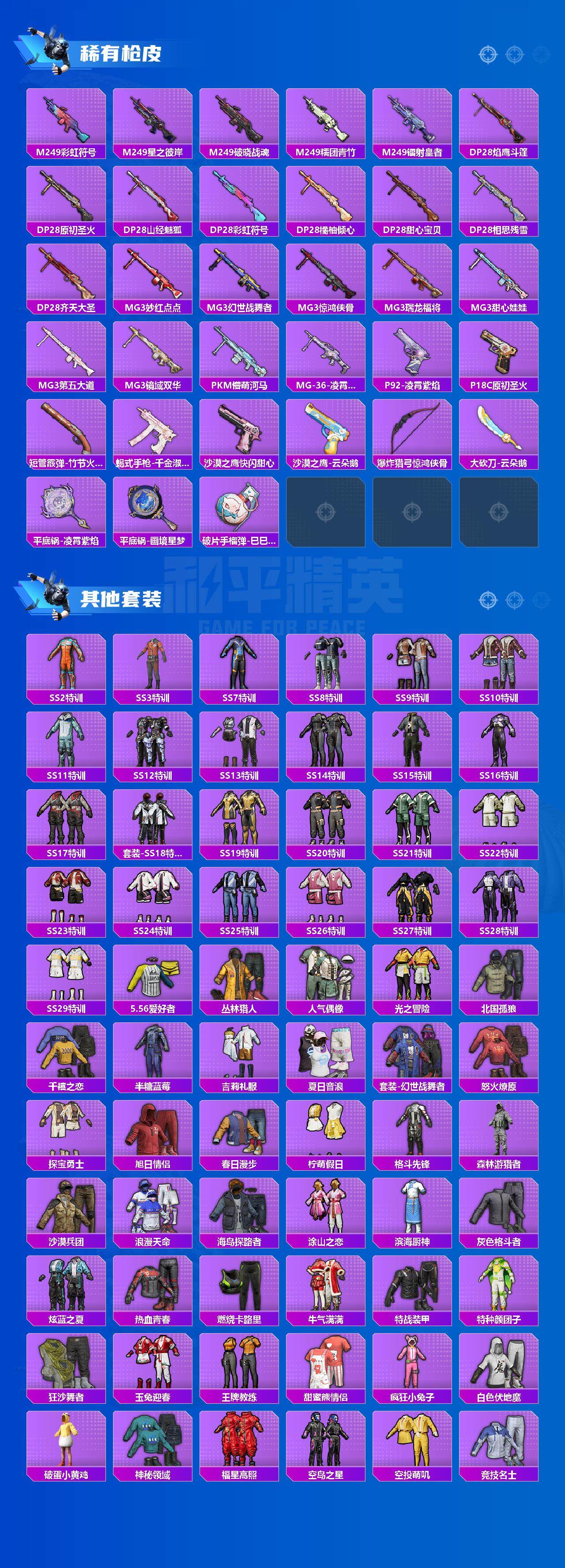 【HP362】249套装/枪械13/装备535/载具2/战备249/王牌印记22/热力值132696/五级AKM-梦之光华/六级SCAR-L-纯梦嫁纱/五级M416-五爪金龙/七级GROZA-香水柠檬/七级AUG-星之彼岸/六级M762-甜蜜誓约/七级UMP45-相思残雪/七级P90-金丰海韵/五级Kar98K-巳巳如意/六级Mk14-精灵梦叶罗丽/四级DP-28-千金淑猫/五级DP-28-豹影疾电/五级MG3-洛神天依/粉装-梦幻火箭/套装-浪漫天命/深海小丑鱼/小丑鱼/胖达团团/忍者信条/S