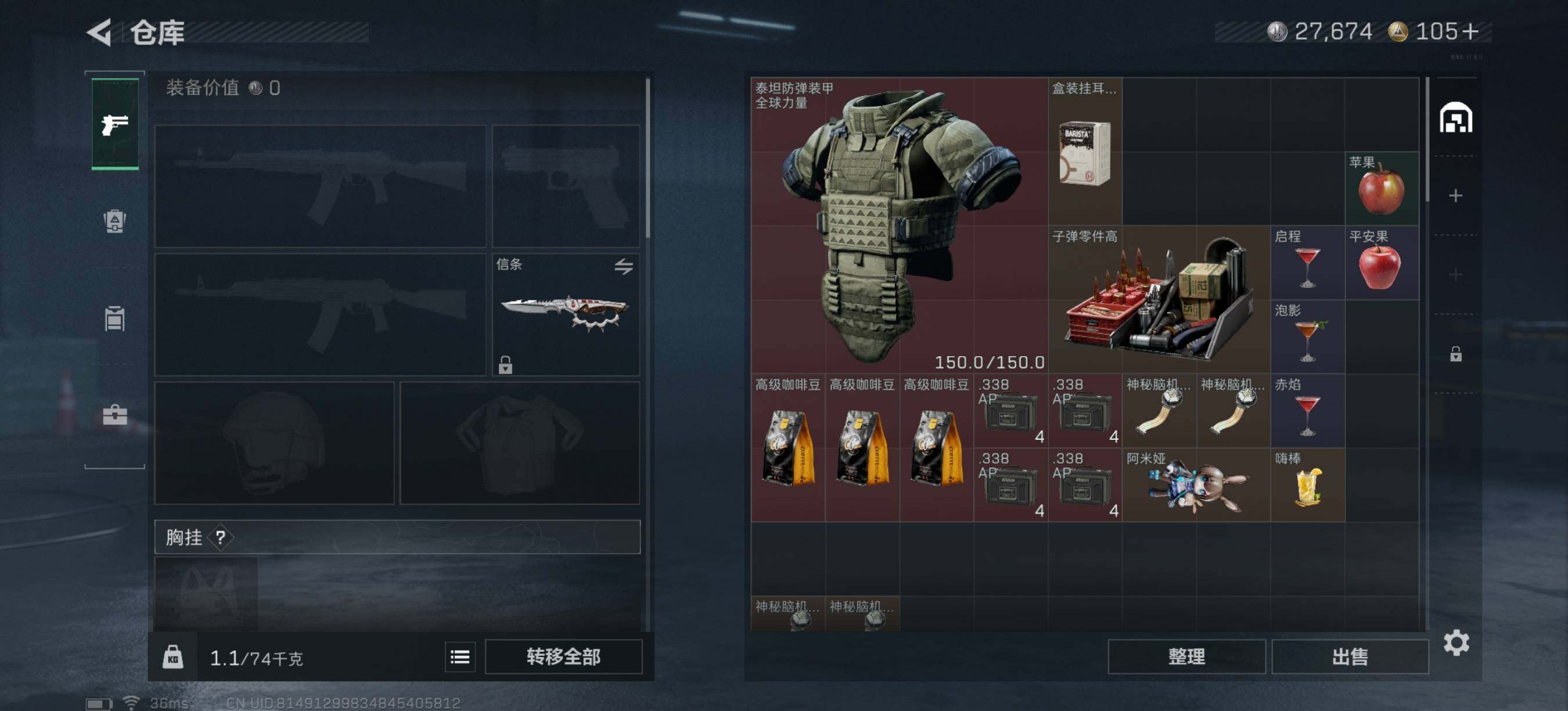 【SJZX1216】总资产(M):18M/哈夫币(K):27K/哈夫币(K):27K/全面战场等级:1_段位:无段位/烽火地带等级:60_段位:铂金/红狼-电锯惊魂/露娜-金牌射手/近战-信条/近战-黑鹰/M4A1突击步枪-蚀金玫瑰/SG552突击步枪-运动员/SCAR-H战斗步枪-水墨云图/SCAR-H战斗步枪-启航/P90冲锋枪-信条/SR-25射手步枪-信条/R93狙击步枪-维什戴尔/M7战斗步枪-百步穿杨/G3战斗步枪-流沙送葬/AS Val突击步枪-百步穿杨/MP5冲锋枪-战术竞备/M