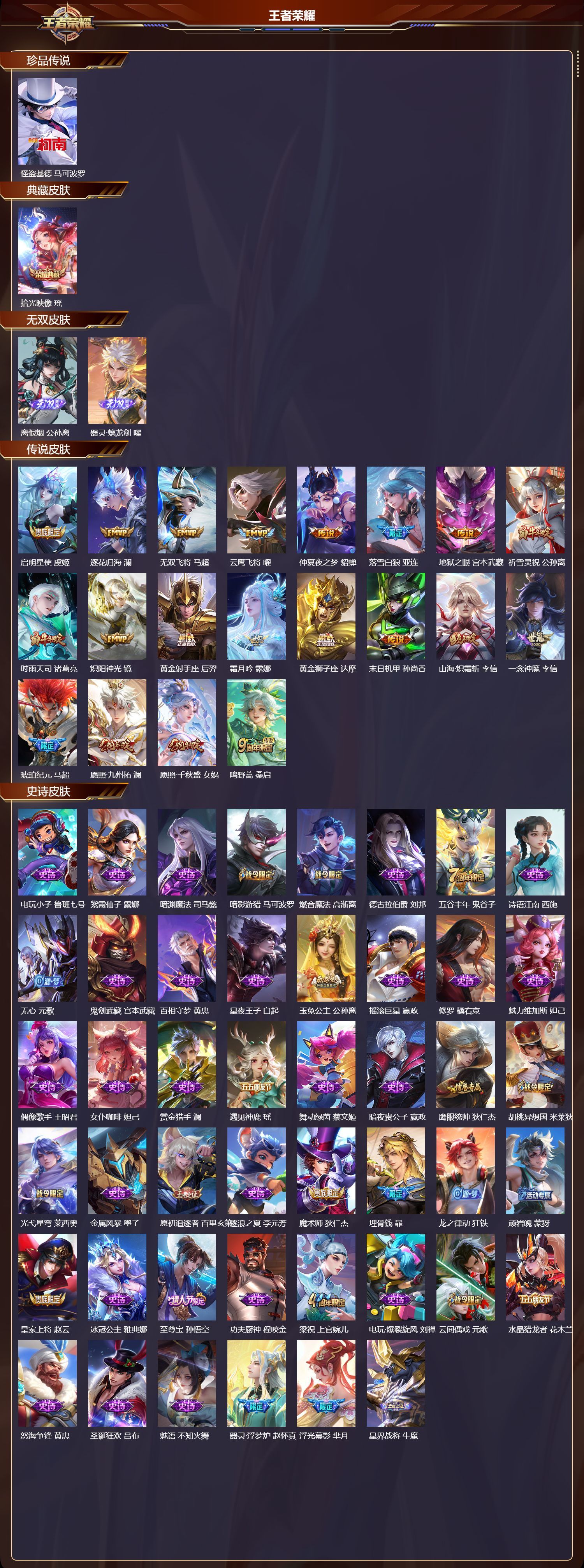 珍品传说皮肤:
