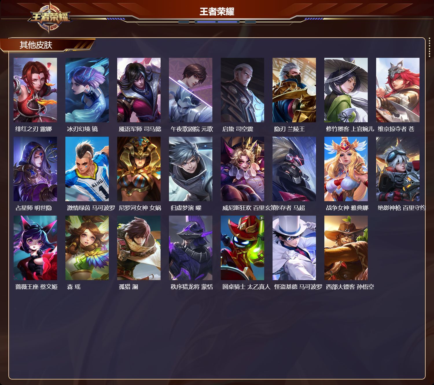 安卓QQ/绝世王者/233皮肤/126英雄/1典藏/0珍品无双/2无双/1珍品传说/20传说/66史