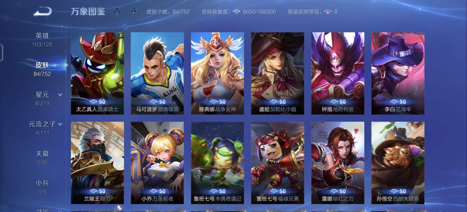 皮肤85 英雄106 非凡王者 传说1 其他皮肤37-艾琳评分高数据可以 有干将的冰霜恋舞曲