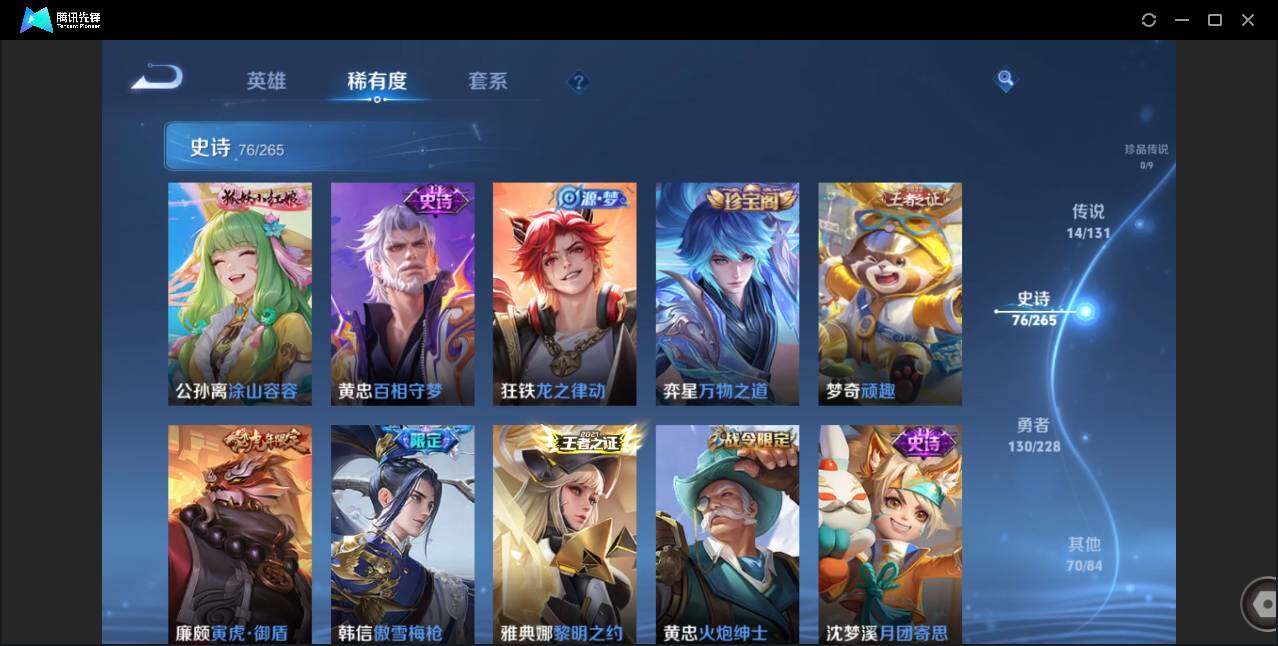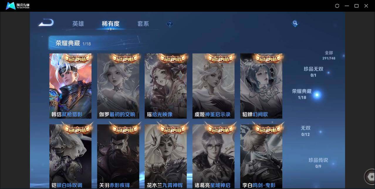 皮肤291 英雄126 倔强青铜 荣耀典藏1 传说14 其他皮肤120-