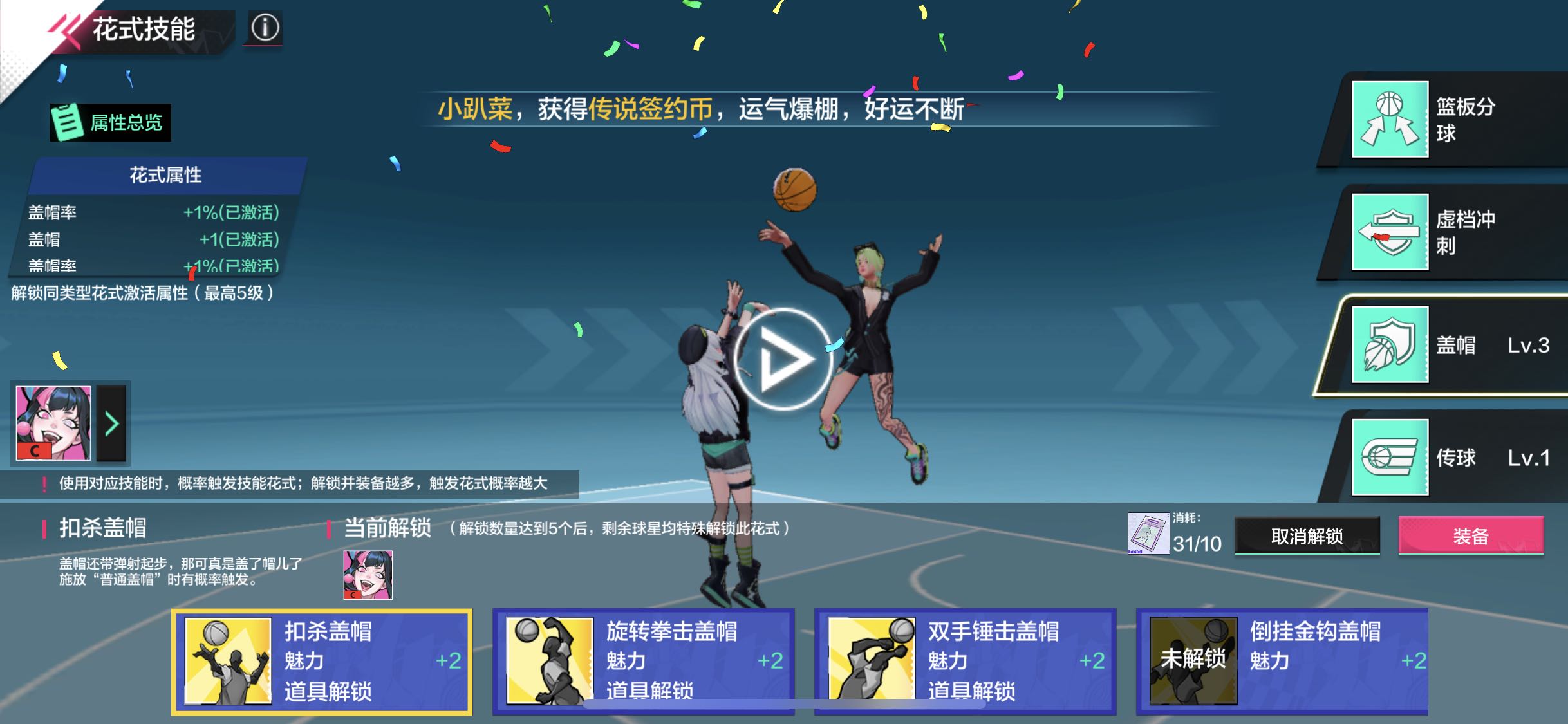 iOS 兔女郎飞沙走石 6球星技能: 单手传球 扣杀盖帽 双手锤击盖帽 旋转拳击盖帽茱莉SSSS