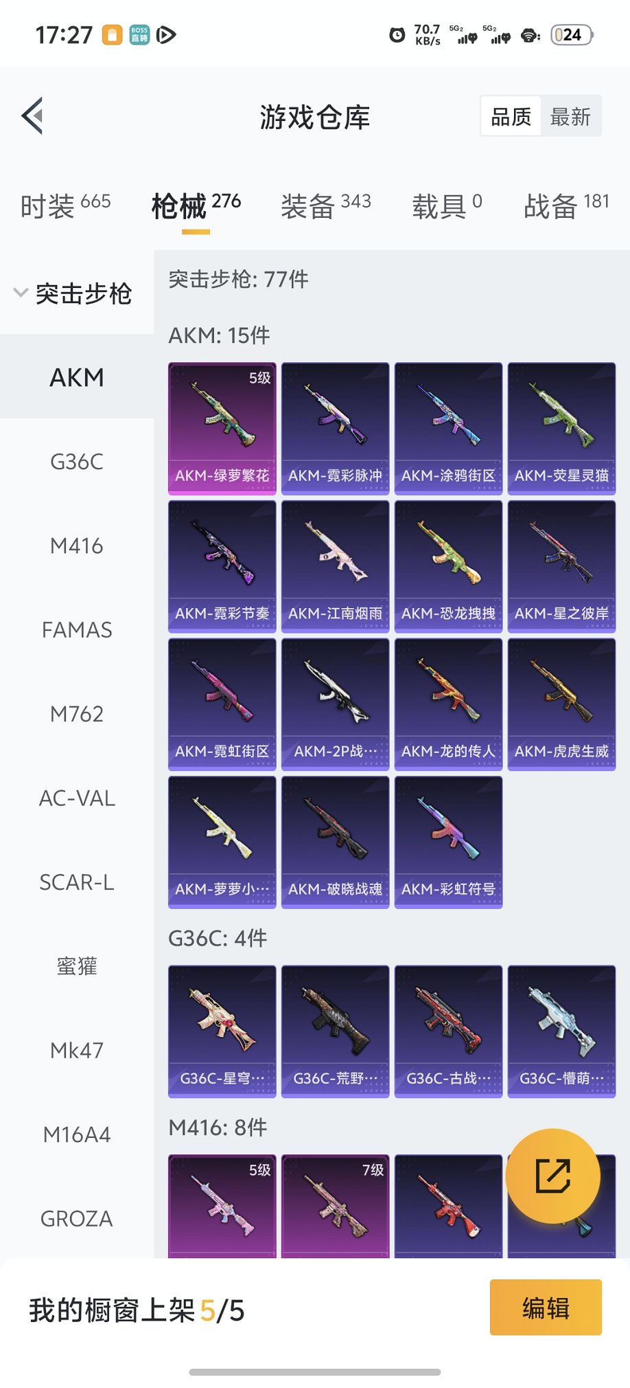 677-可二次【15特效枪11粉装、秒换绑不用等】、安卓Q区-81046热力值-8印记-178套装-276枪皮、【2稀有】、Mark.06蓝螳螂、奇异狩猎者【11粉装】、宙之时溯、星云暗核、玩偶服-猪猪侠、傲傲奶龙、闲梦青缨、小可学妹、极限特训、创世·救赎、角色-异瞳寒姬、星穹咏叹调、角色-奇迹舞步、美琪【15特效枪】、M416-心之恋语(7级)、SCAR-L-锦绣绵绵(5级)、AKM-绿萝繁花(5级)、M762-青锋波束(5级)、MK12-雪月幻音(3级)、Kar98K-创世·救赎(4级)、K