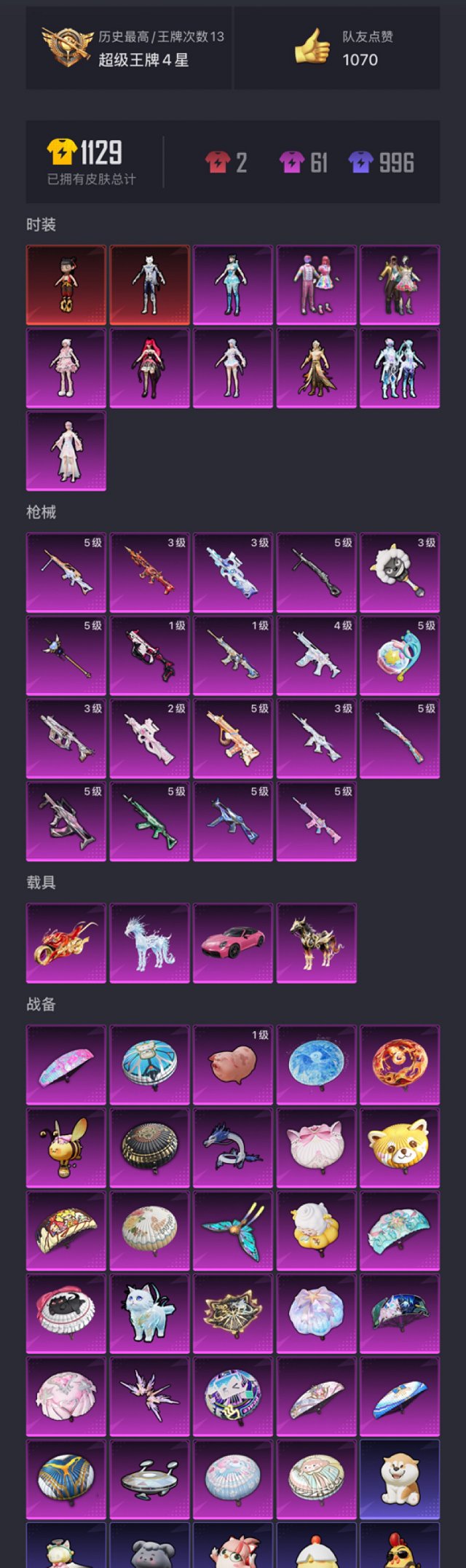 322-【2红装2级哪吒都市男神19特效枪9粉装4载具素材号、秒换绑不用等】、苹果Q区-105545热力值-13印记-216套装-329枪皮、【2红装】、魔童闹海-哪吒(2级)、灵猫魔法师-塞维尔(1级)【4载具】、黑曜夜骑、冰绡玉鳞、踏焰逐风摩托车、保时捷911、敞篷版(星珀红)【1稀有】、都市猎人【9粉装】、天使彩虹糖、蝶舞迷情、角色-罗征、角色-异瞳寒姬、角色-烟云彩露、角色-绯穹魔姬、角色-荧海星豚、幻彩电音、角色-羊梦糖心【19特效枪】、M416-女娲灵识(3级)、M416-灵猫魔法师