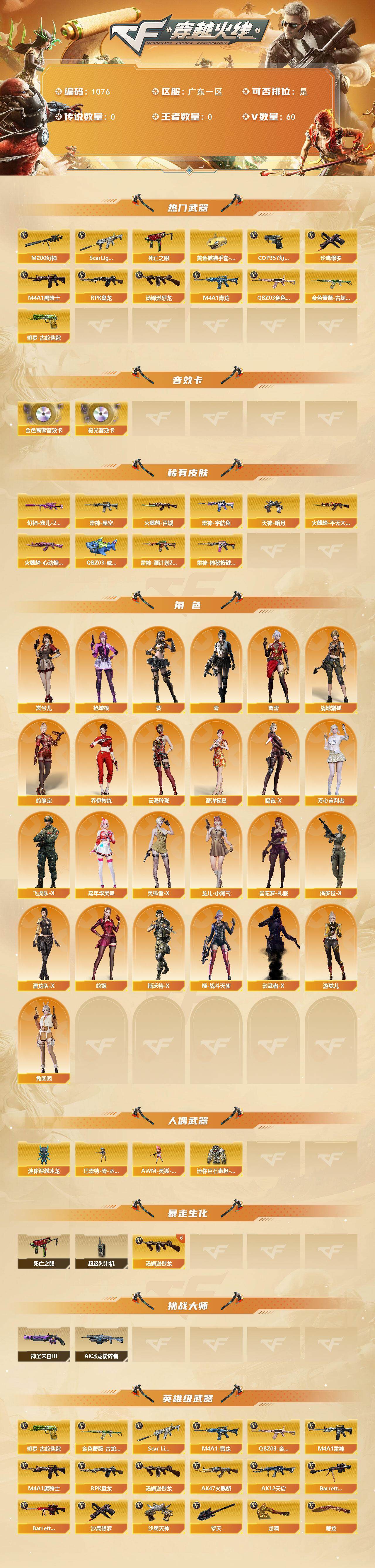 广东一区-60V-0王者-0炫金【热门武器】:QBZ03-金色蔷薇,Scar