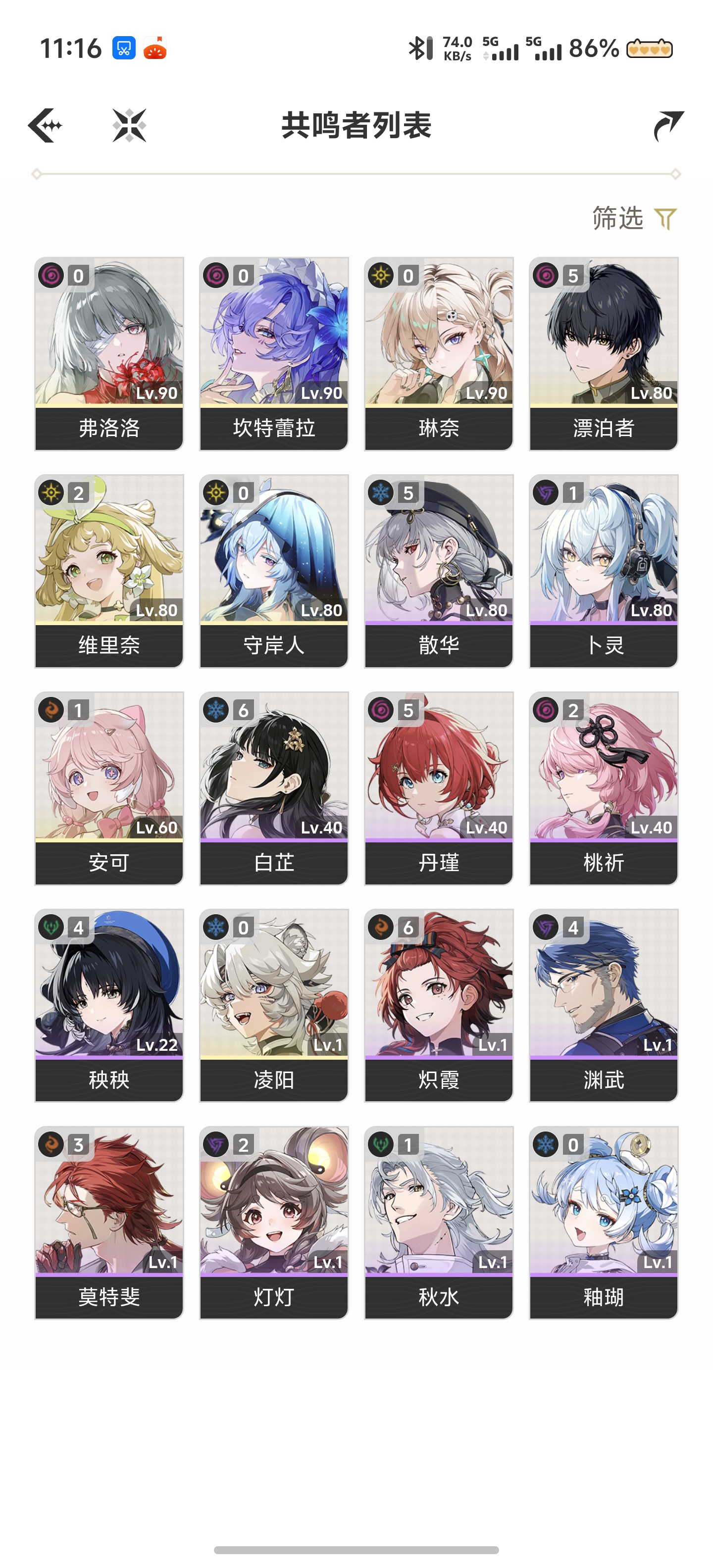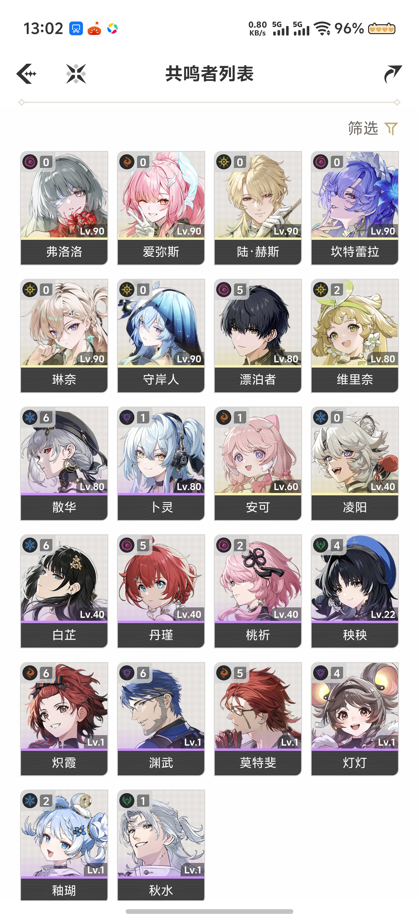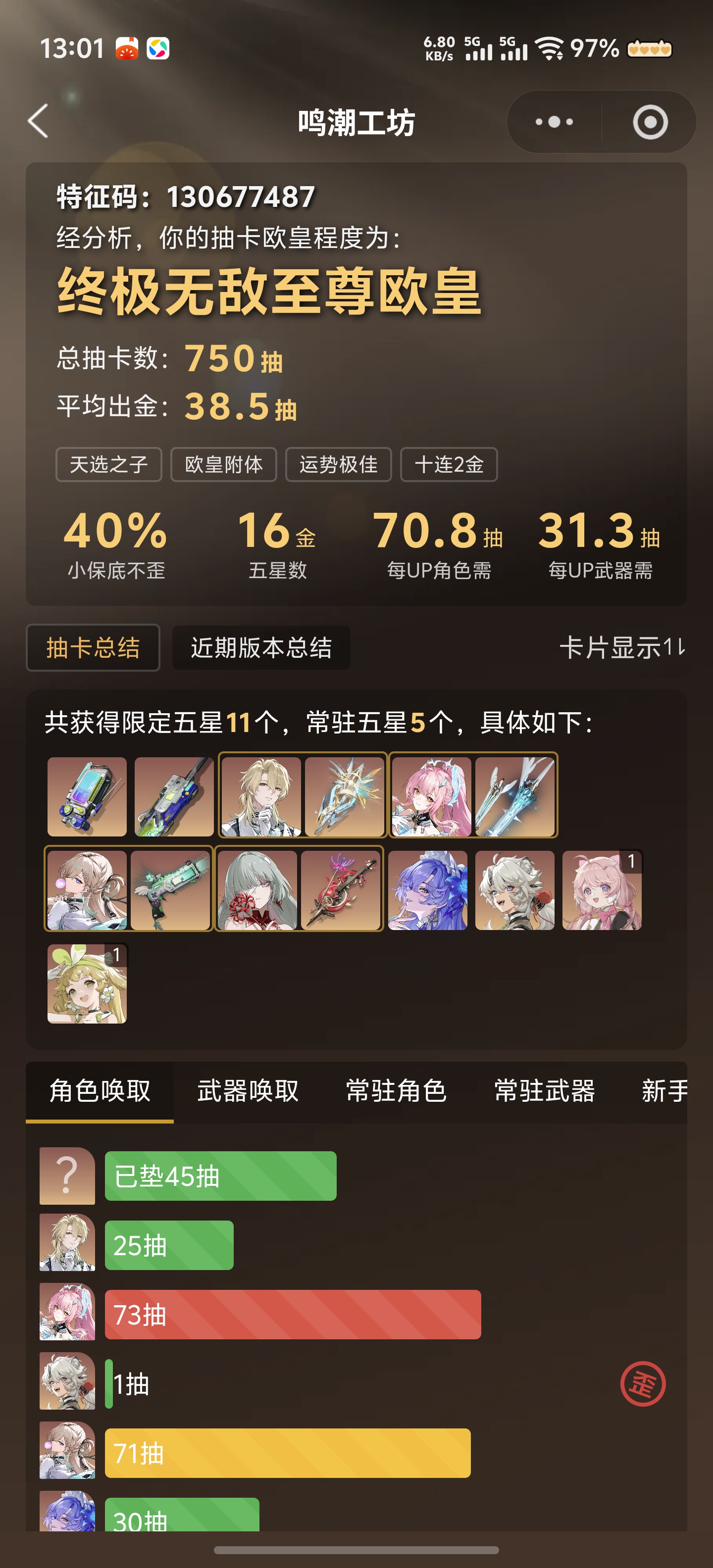五星角色数: