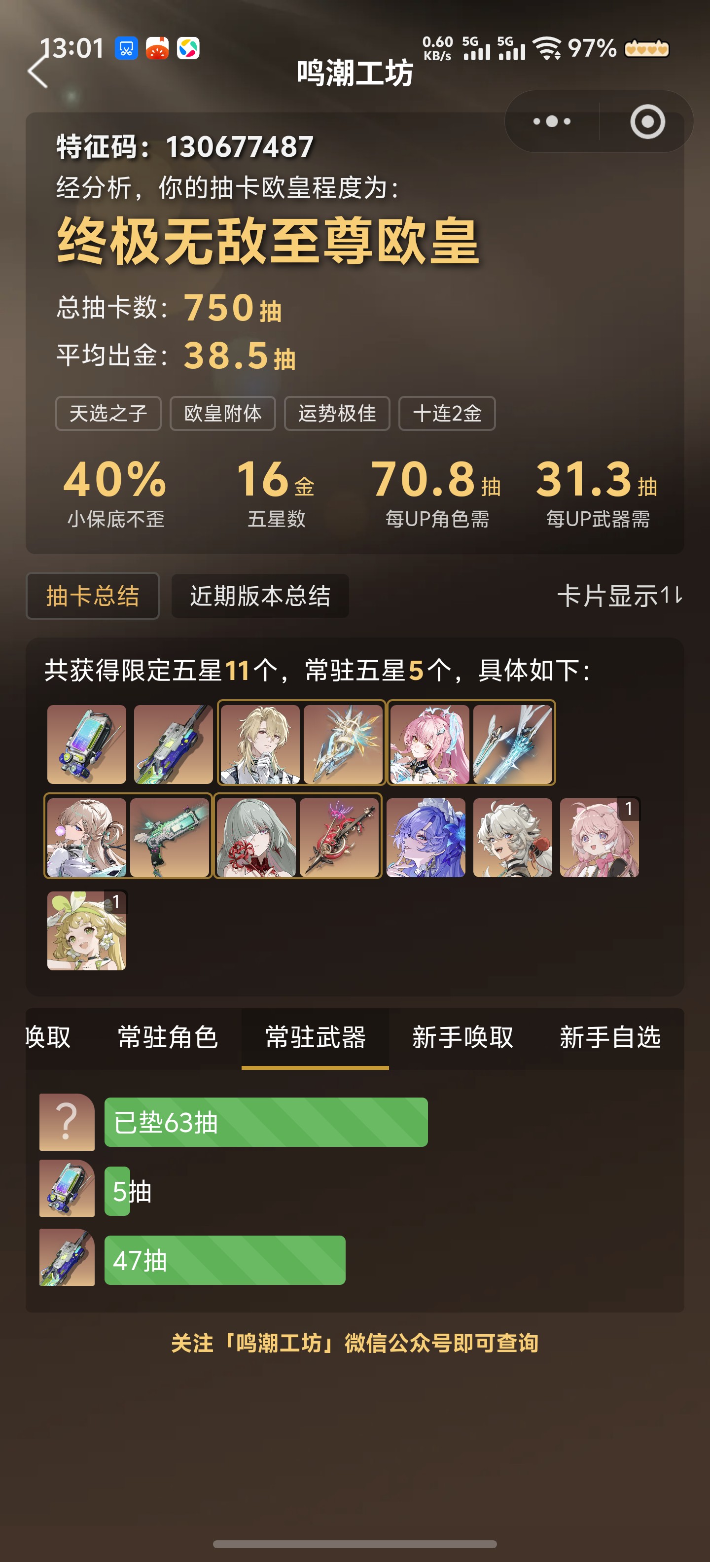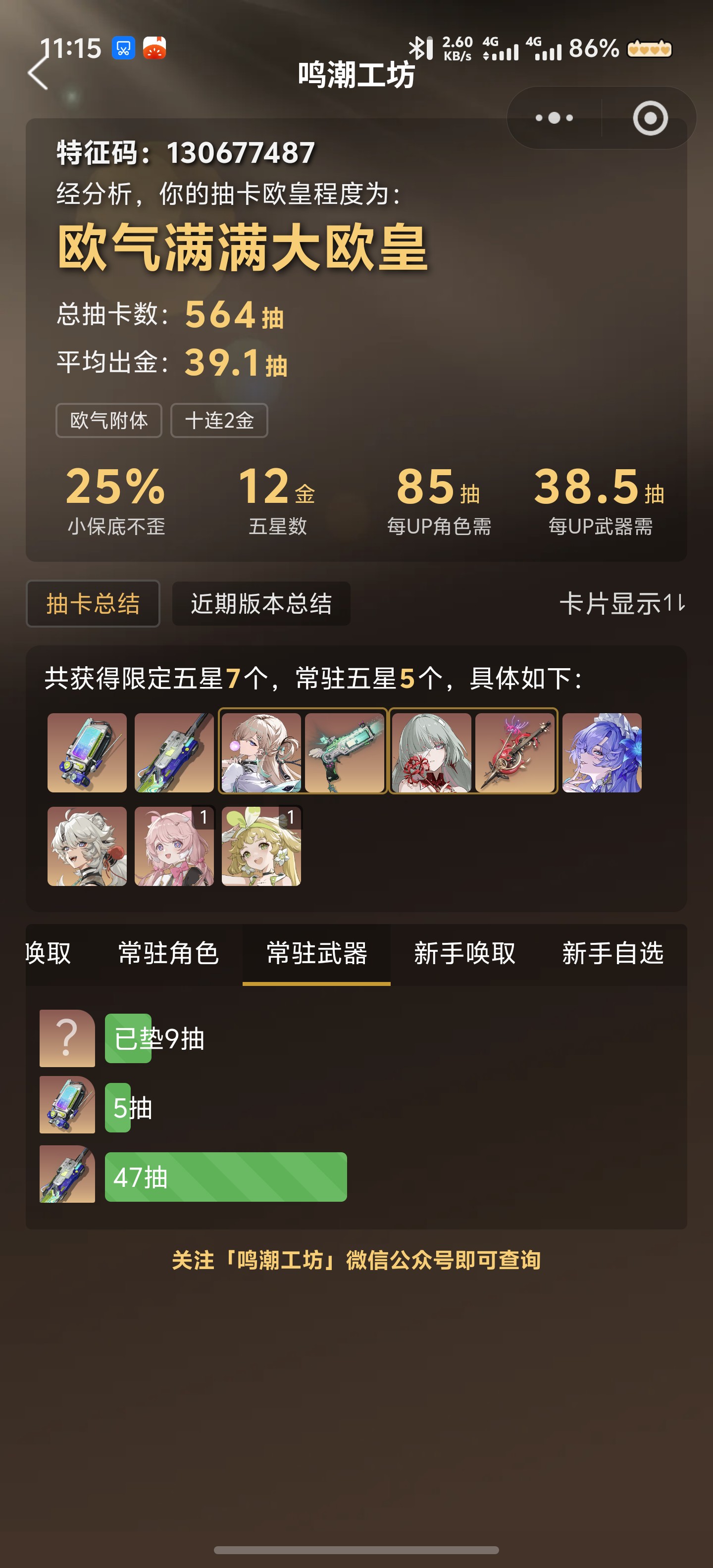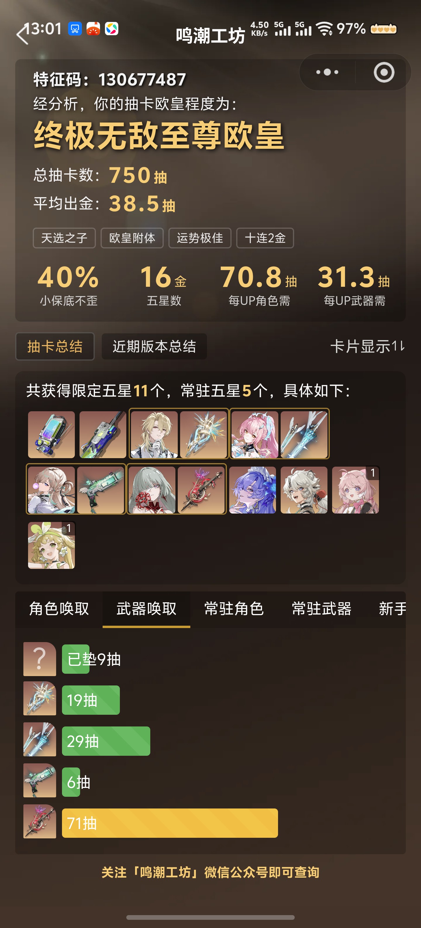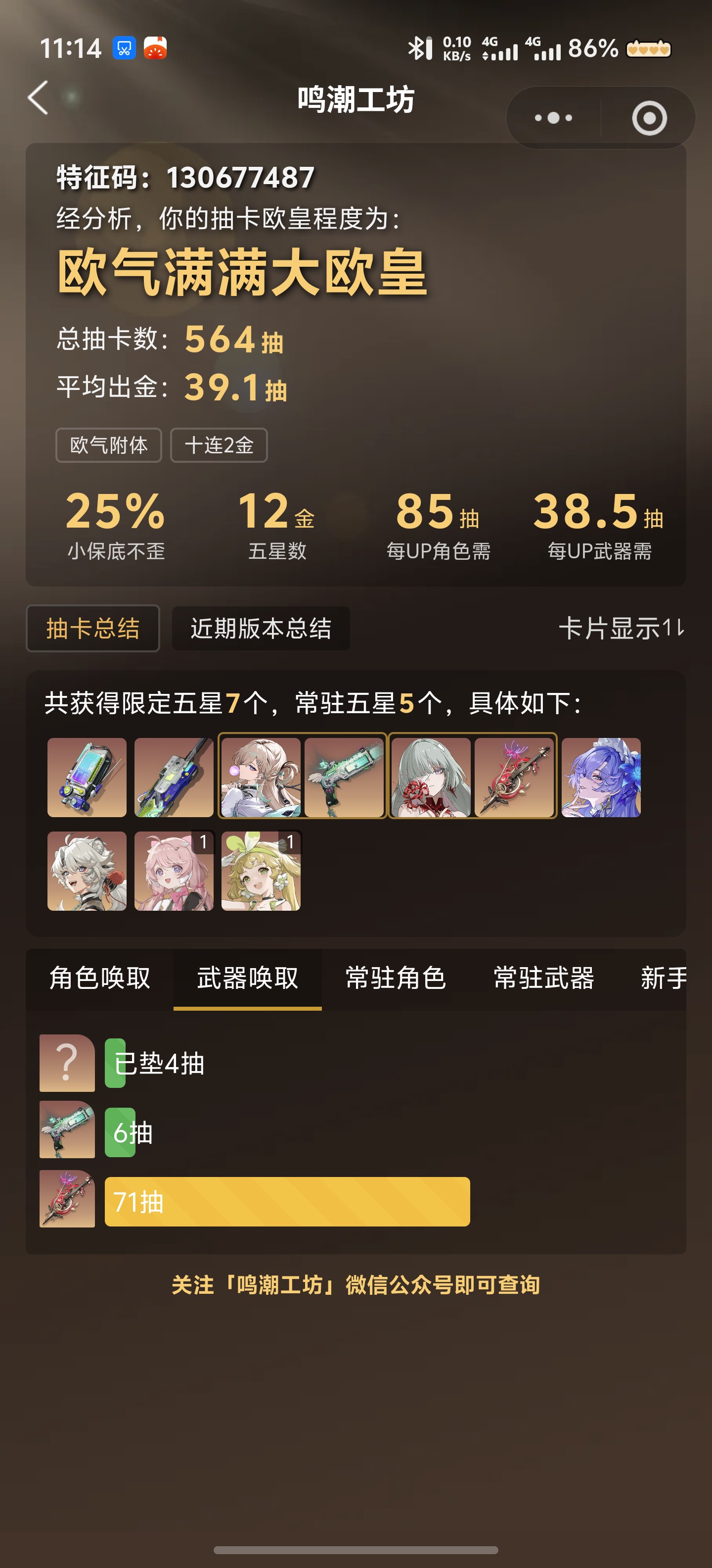 五星武器数: