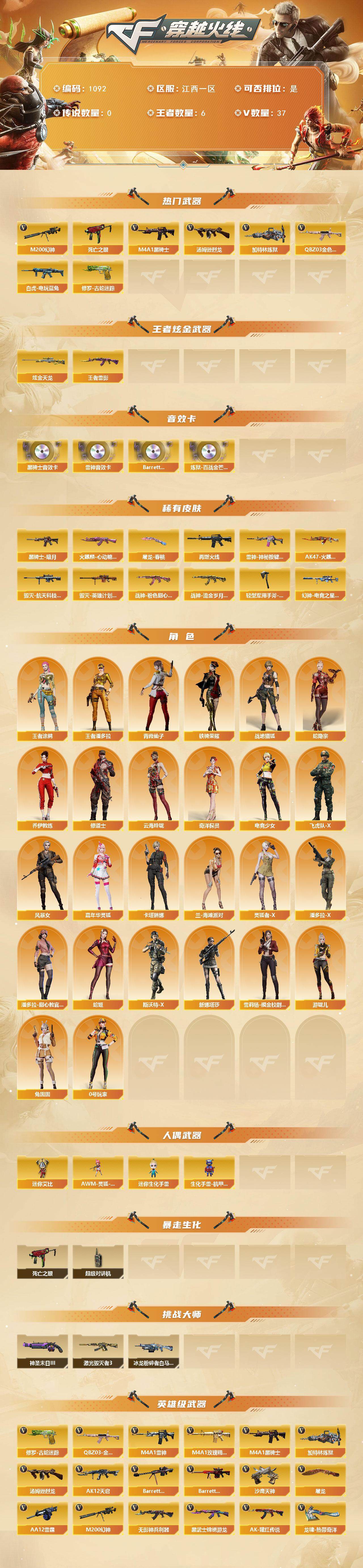江西一区-37V-6王者-1炫金【热门武器】:QBZ03-金色蔷薇,M200