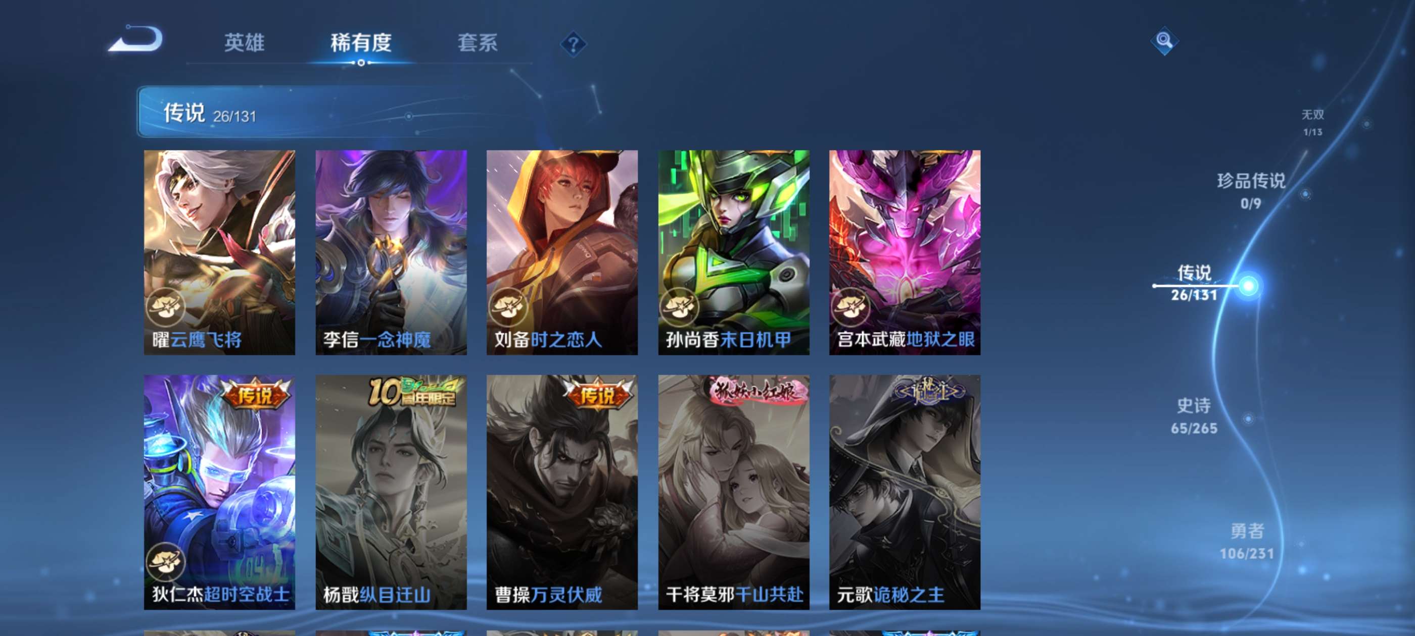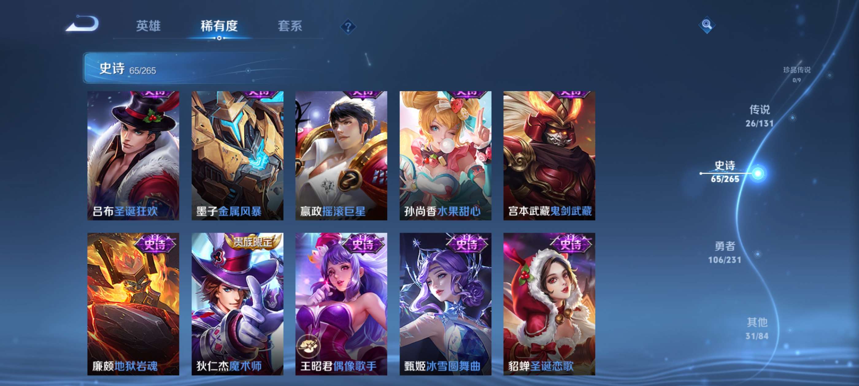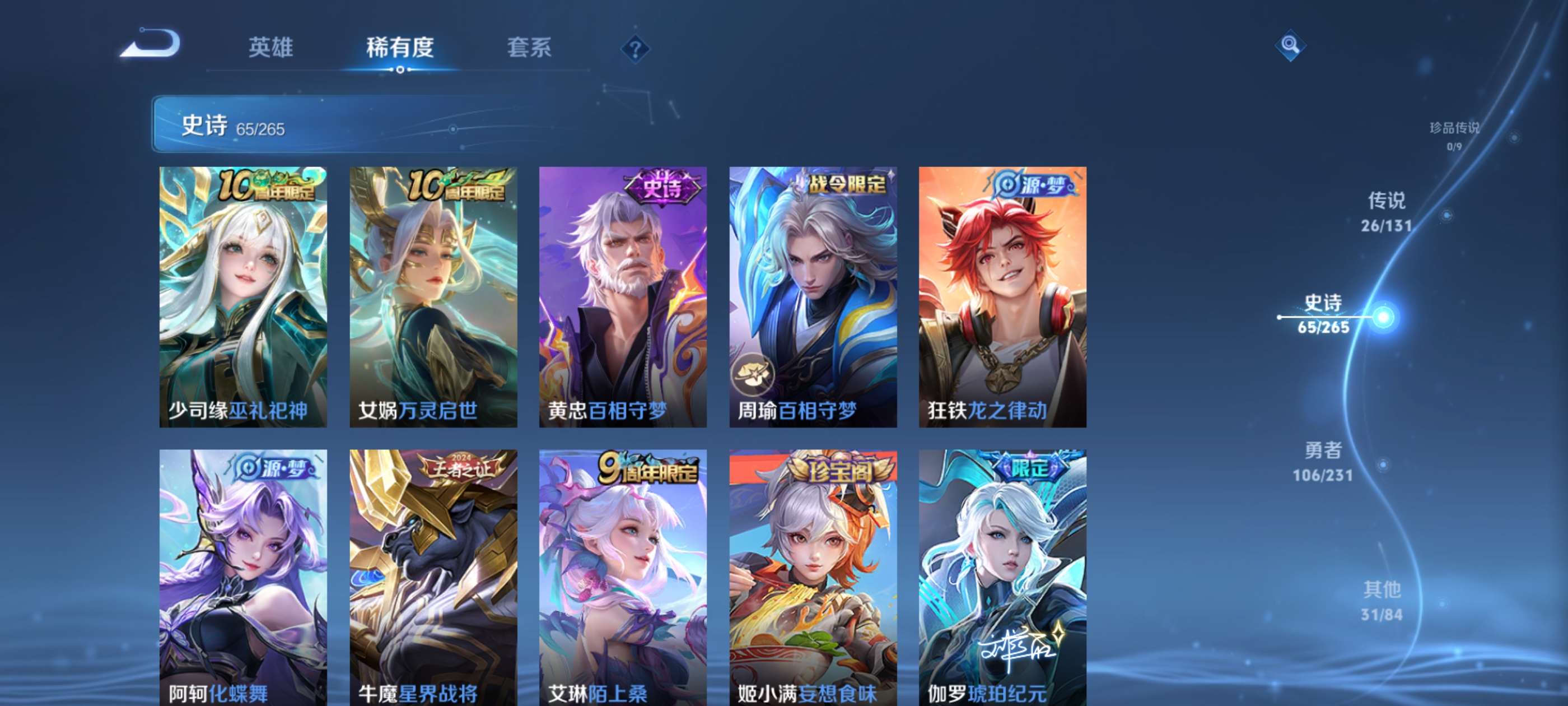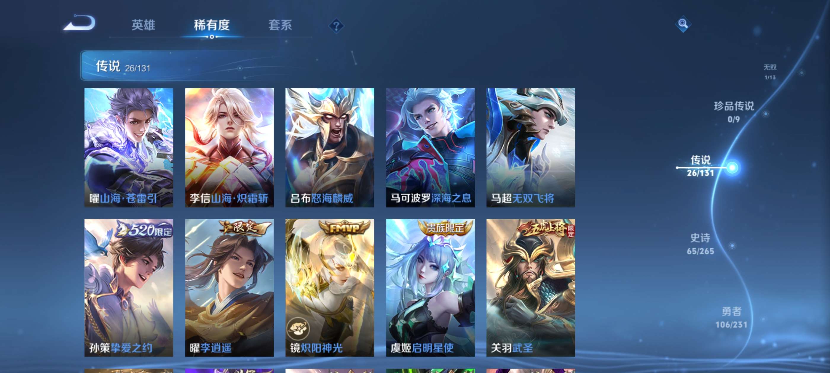 有意者来,虽然是贵族8但是限定皮肤数量还可以,喜欢玩打野射手对抗的可以考虑考虑,曜是全皮